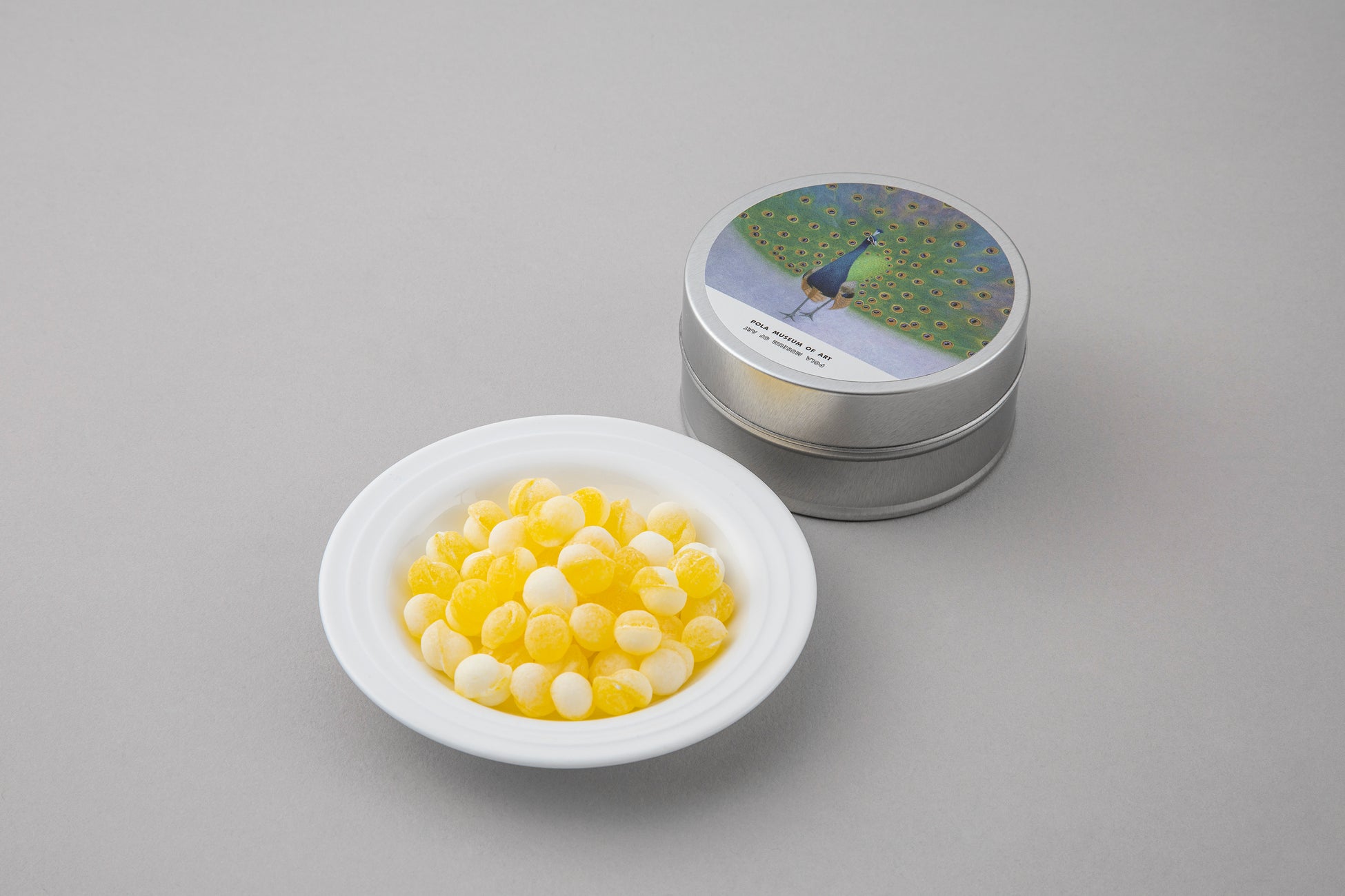 京都の飴屋さんが製造した、爽やかなレモンソーダ味のキャンディーです。杉山寧《薫》をパッケージにあしらいました。