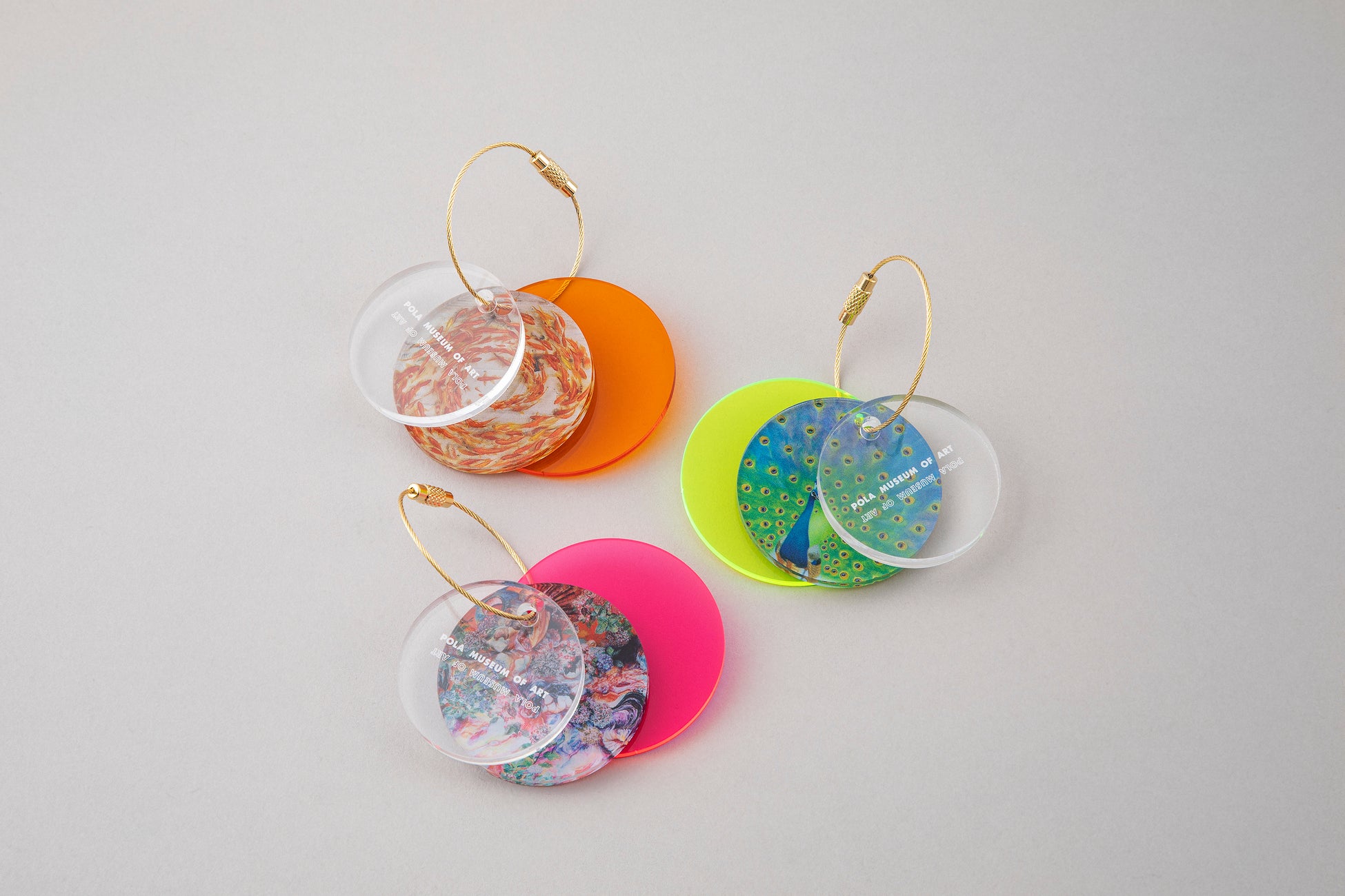 深堀隆介《方舟2》、谷保玲奈《蒐荷》、杉山寧《薫》それぞれの作品からイメージしたカラフルなアクリル板が印象的なキーホルダー。お気に入りの作品をいつでも持ち歩けます。軽やかに揺れるのでバッグ等のアクセントにも。