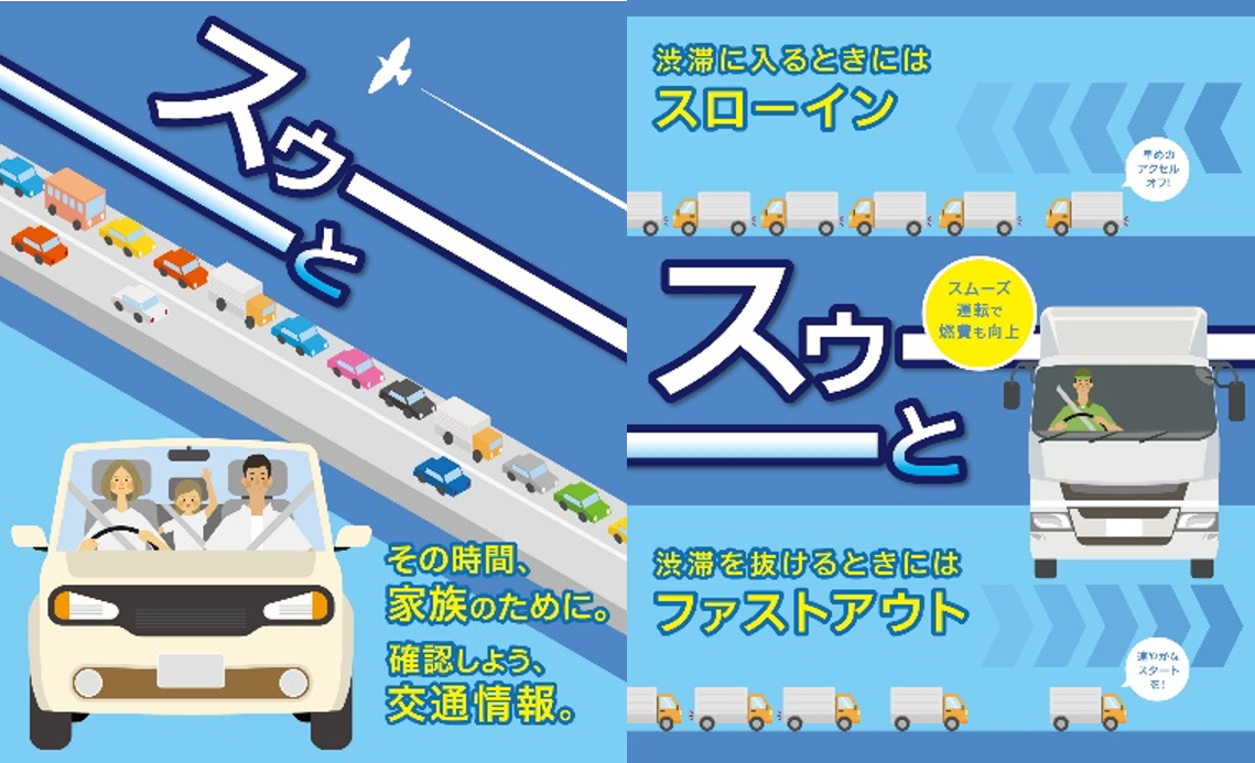 配送運転手をはじめとした業務ドライバーや、夏休みに車で出かけるドライバーに向け、渋滞を減らす行動3箇条を呼びかけます。