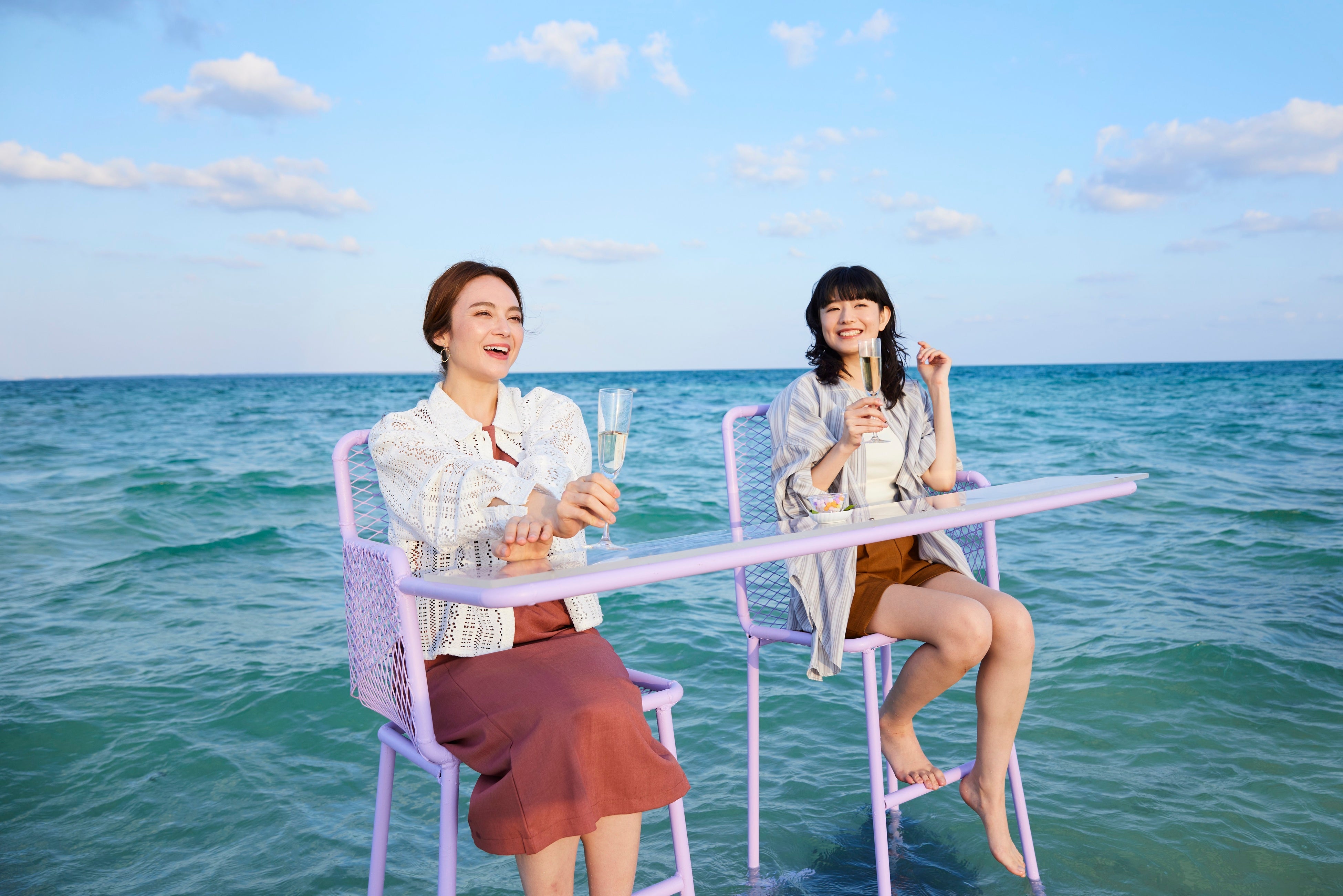 イベント会場の目の前に広がる海に、今年は新たにハロウィンカラーの海上カウンター席が登場します。海上カウンター席では、国内最大の珊瑚礁「石西礁湖」が広がる海を一望することができます。コバルトブルーの絶景を前にハロウィン気分を味わえる空間です。