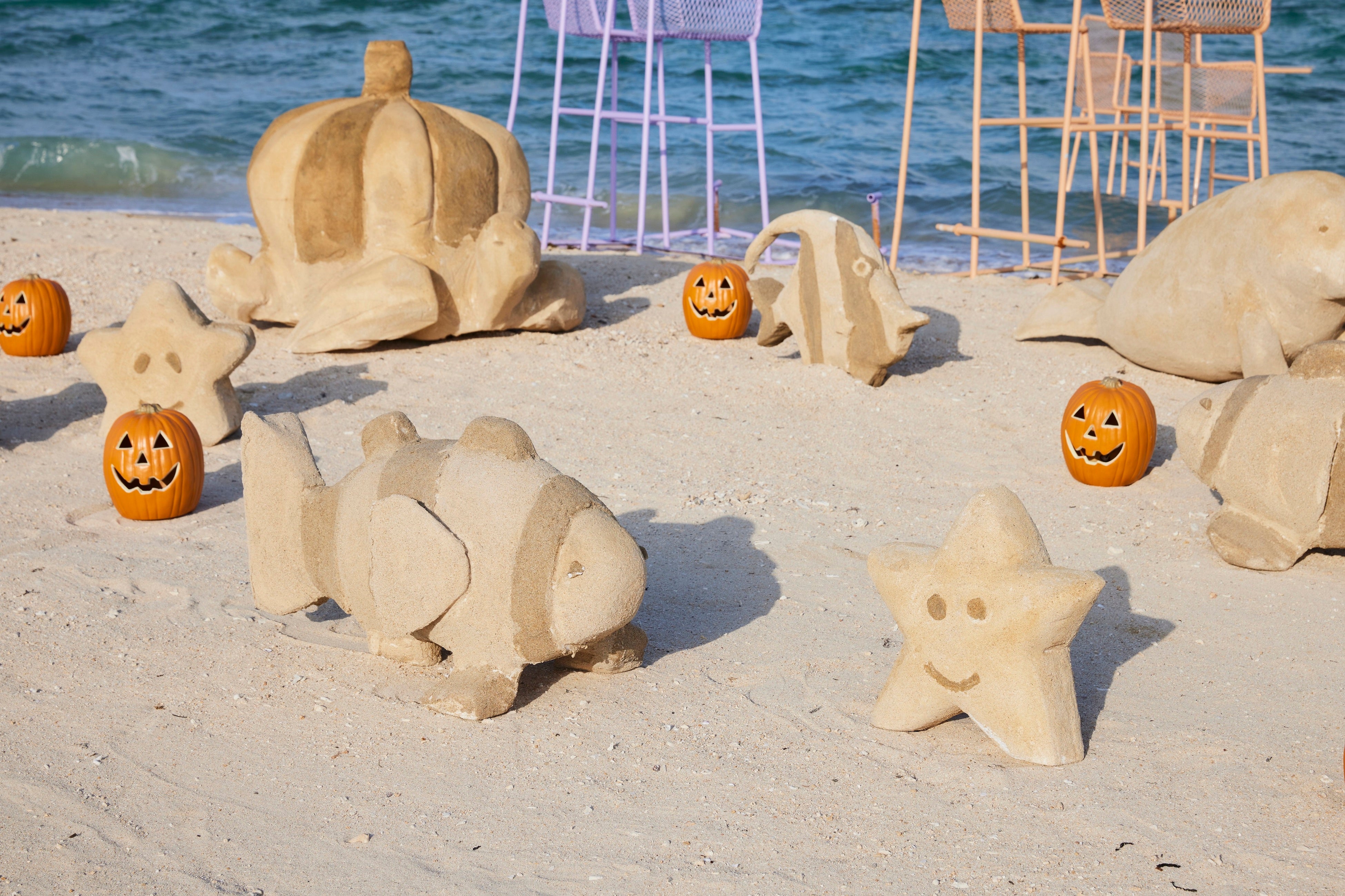 ホテル隣接のビーチに、今年も南の島のハロウィンを楽しむイベント会場が登場します。イベント会場には、小浜島の美しい海で出会うことができるウミガメやクマノミ、ツノダシなど、海の生き物のオブジェが並びます。今年はまるで海上に浮かんでいるかのような海の生き物のオブジェも登場。小浜島ならではの特別なハロウィンを演出します。