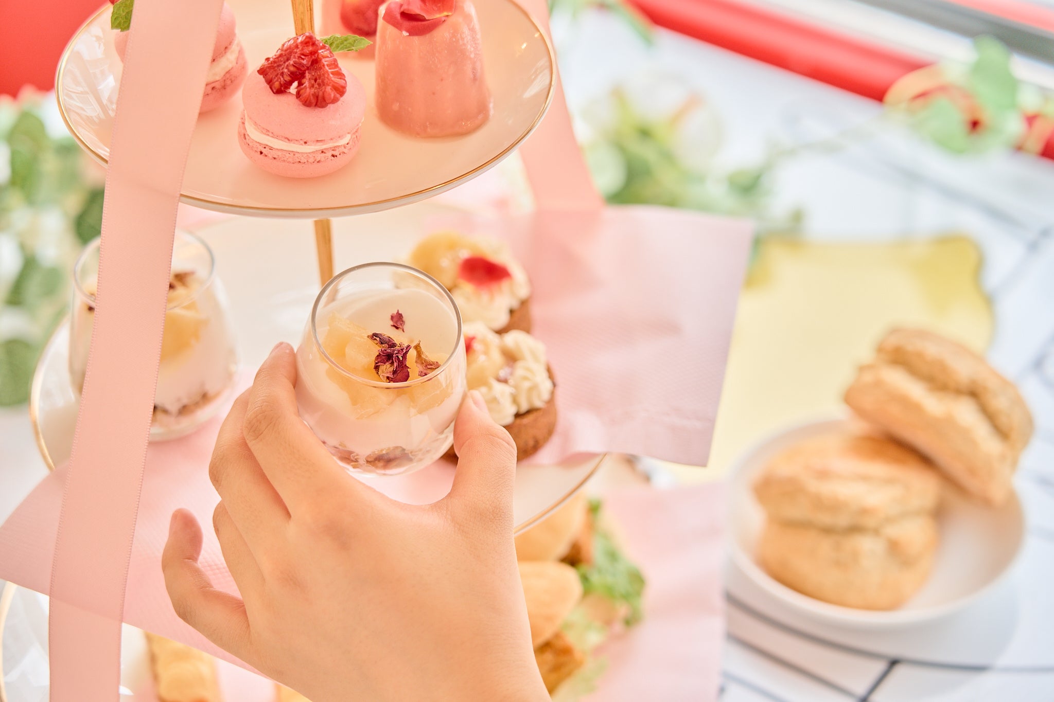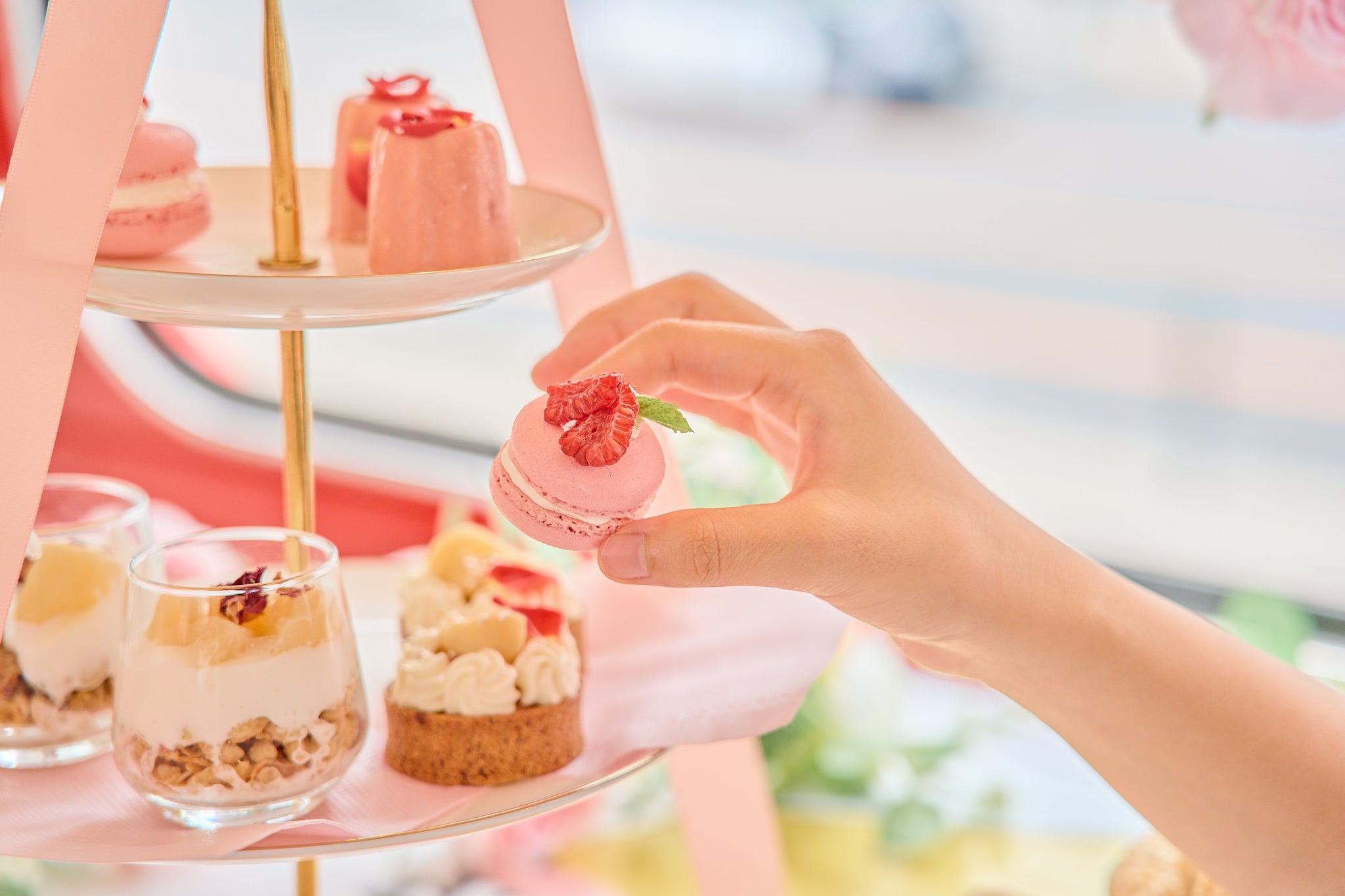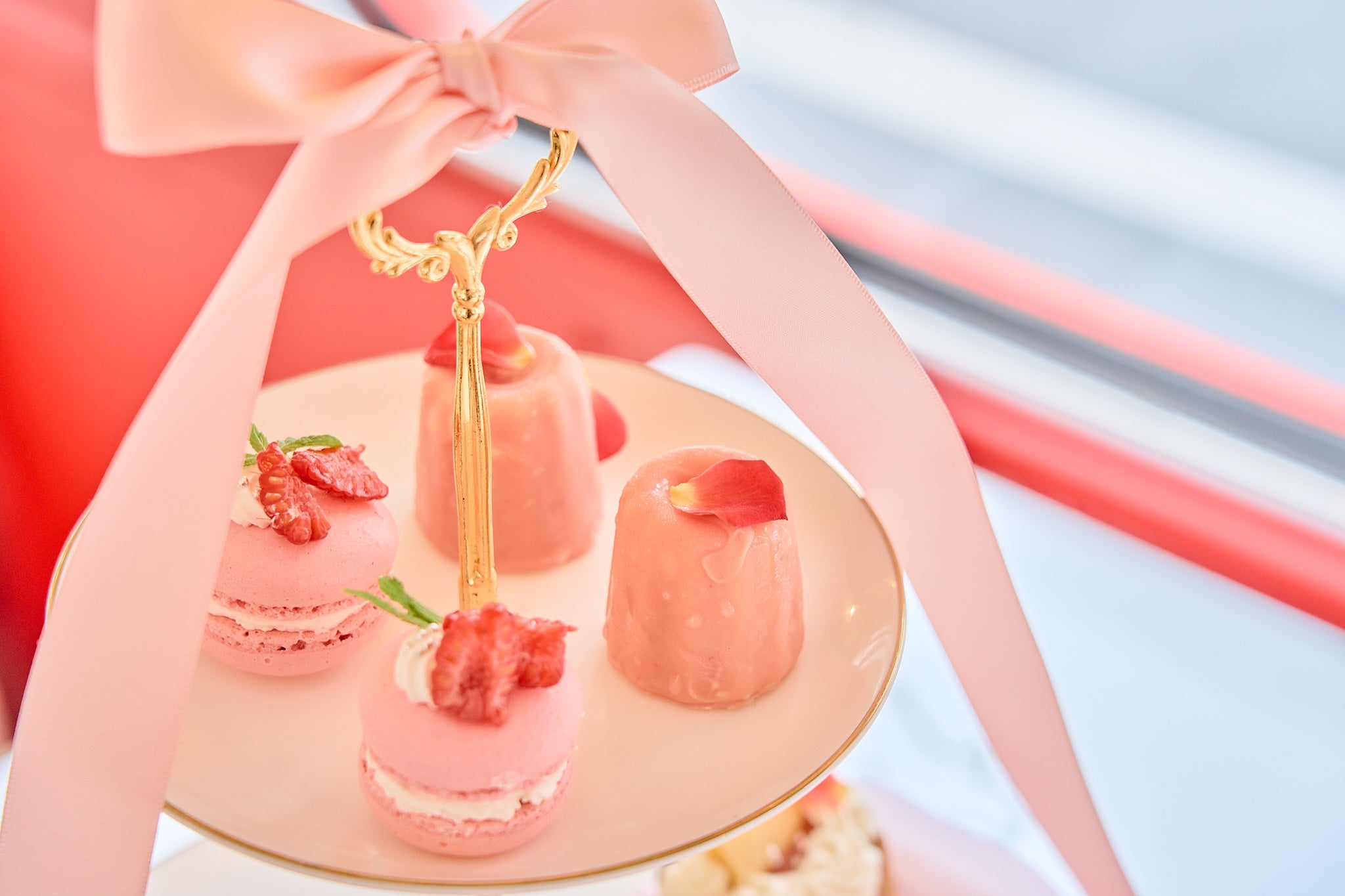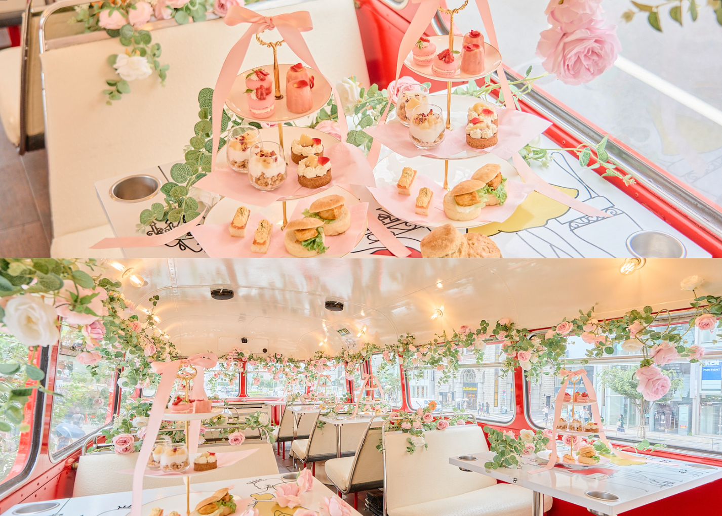 内装は大人気の「ピンクの花畑」でデコレーションし、アフタヌーンティーメニューには”マカロン”と”カヌレ”が登場。昨年よりパワーアップしたアフタヌーンティーバスツアーをご提供いたします。