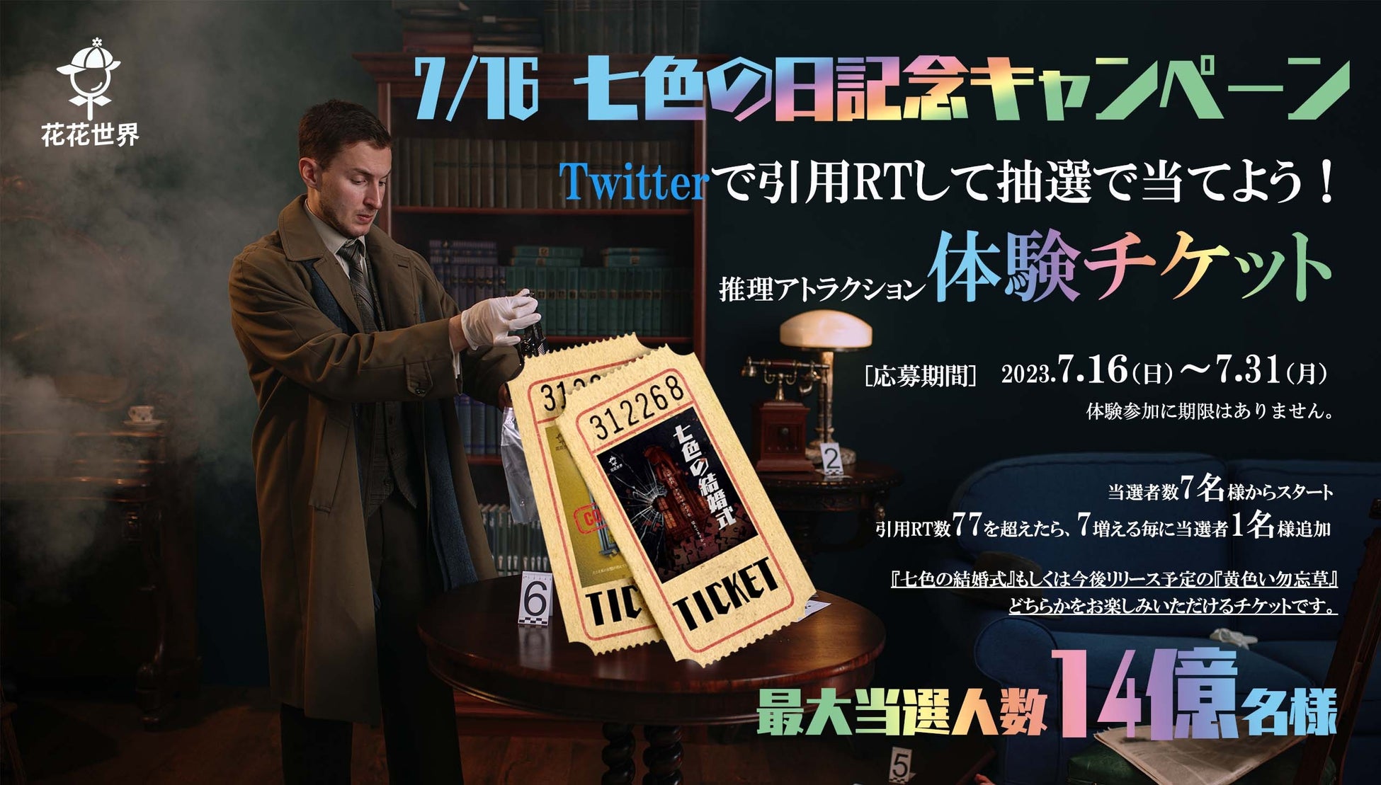 超没入型マーダーミステリー店舗【花花世界】は7月16日=七色の日を記念して、Twitter引用RTキャンペーン第2弾を実施いたします。