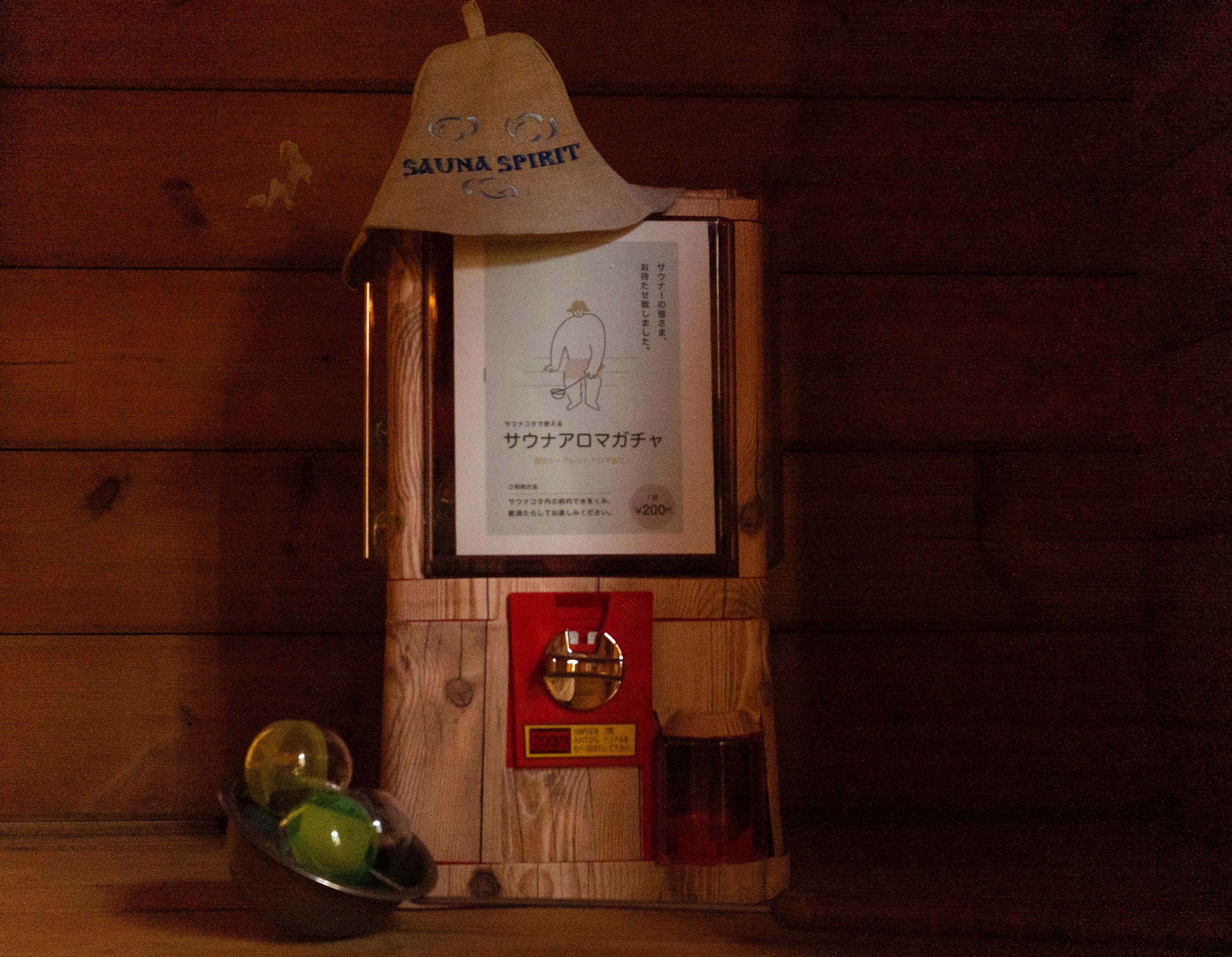 utataneで大盛況のアロマガチャをハレニワでも実施! ガチャガチャで出てきたアロマは男性バレルサウナでのセルフロウリュ時に使用することができます。ぜひアロマとの出会いを楽しんでみてください!