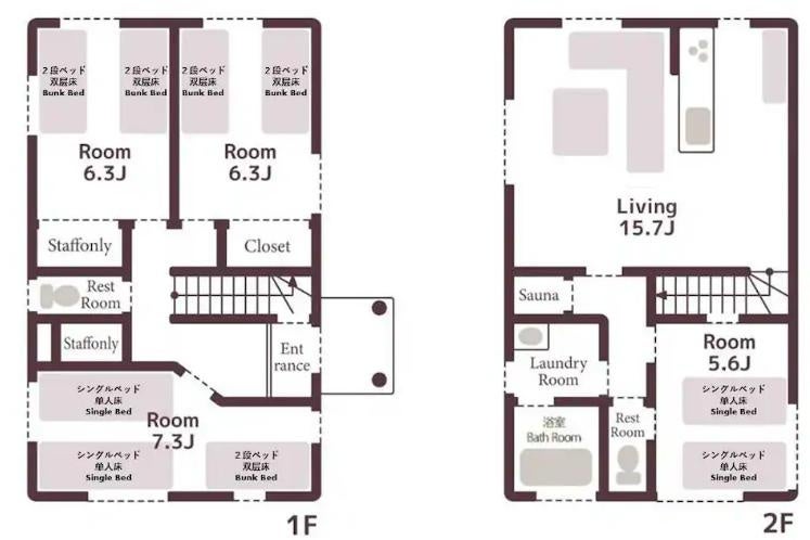 宿泊可能人数 :SORA棟:14名(シングルベッド14台)