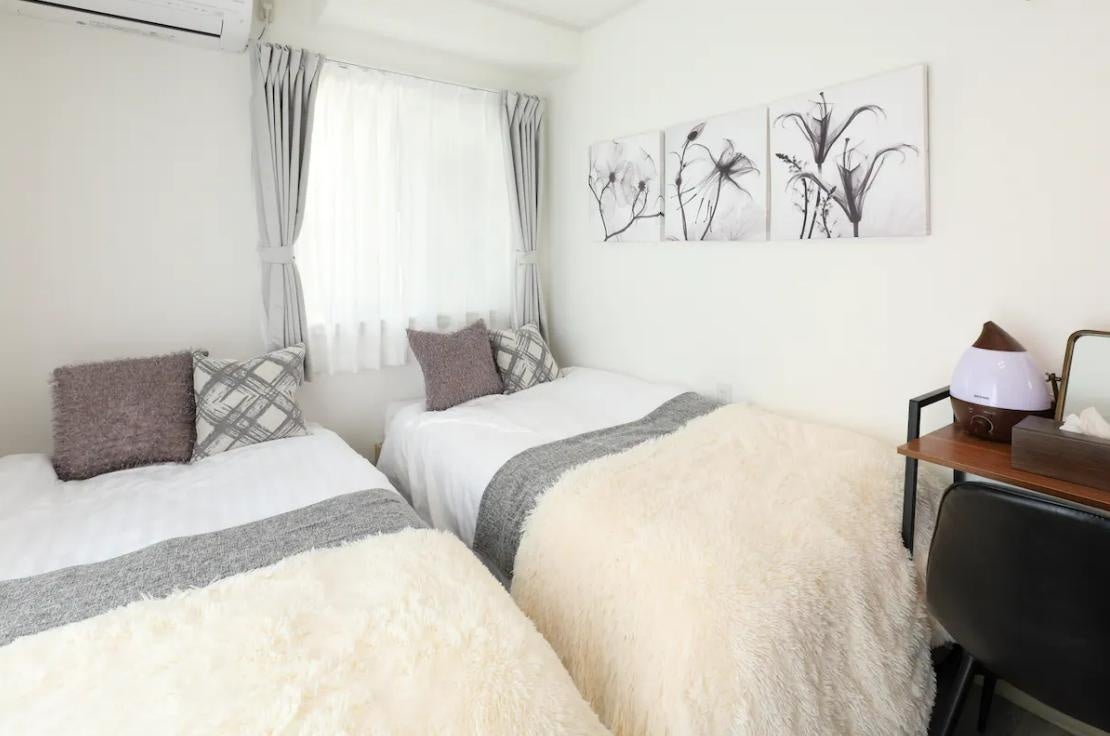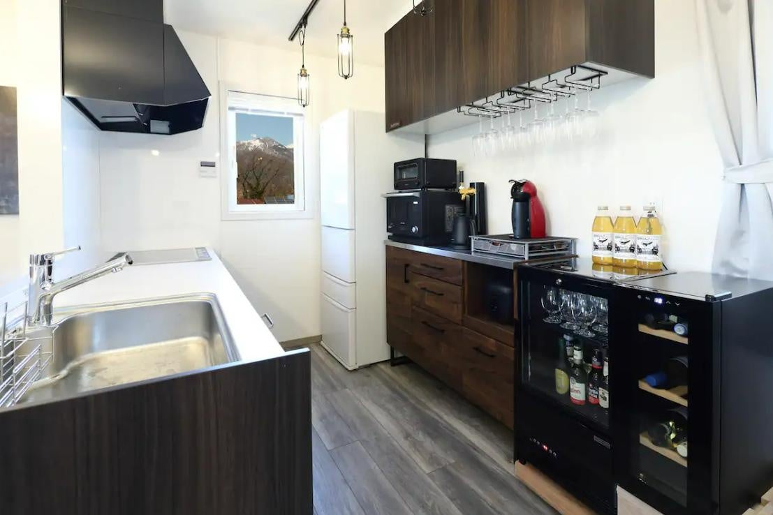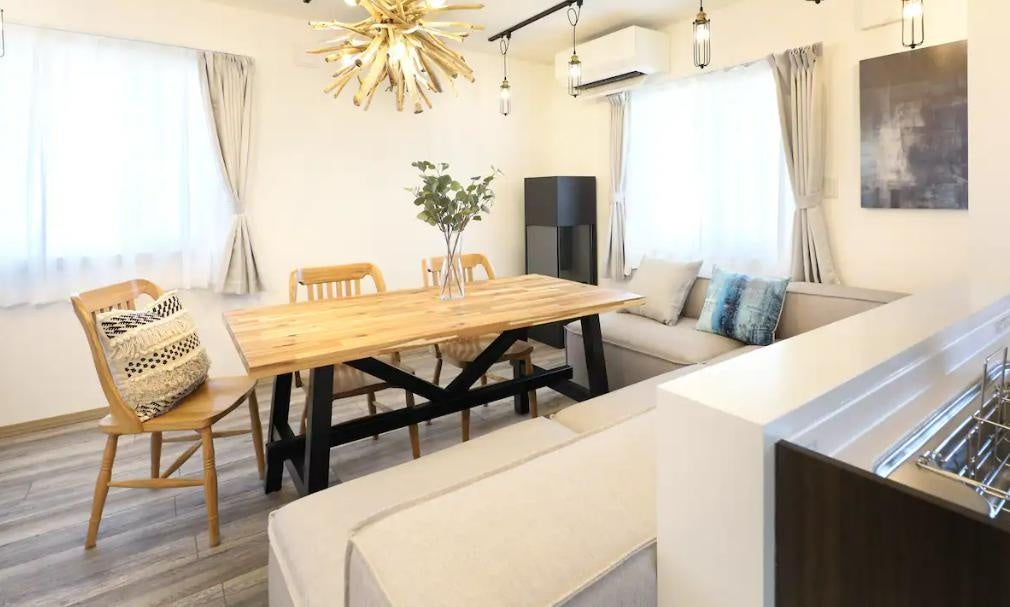 リビングにはアラジンプロジェクター完備(NETFLIX)しております。隣接のSora棟と合わせて8寝室、28名まで収容可能です。