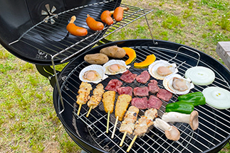 キャンプ場内には、バーベキューエリアも備わっており、地元泉南の新鮮な食材を使用した料理を楽しむことができます。四季折々の味覚と共に心地よいキャンプ体験をお約束します。また、キャンプ場内ではスタッフのユニホーム、BBQの食器などにCHUMS製品を使用しています。ご希望の方は、一部ホットサンドメーカー、カトラリーなどのキャンプグッズや雑貨等を売店にてご購入いただくことが可能です。
