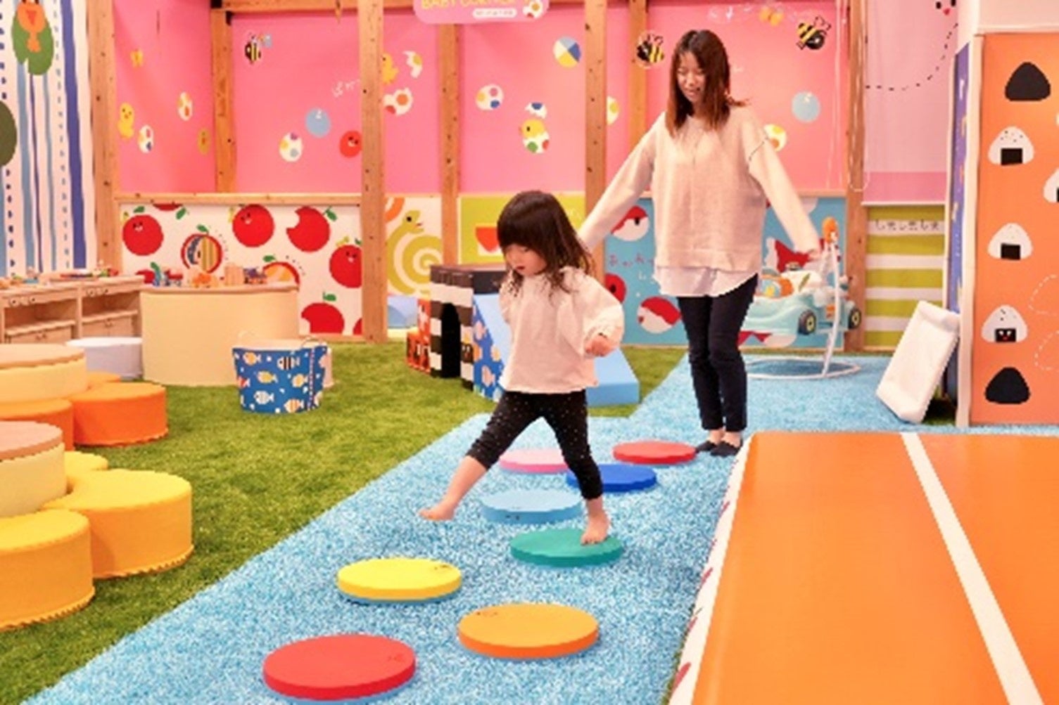 赤ちゃんが夢中になる「配色」と「デザイン」をモチーフにした遊びやおもちゃ、フォトスポットなどがあり、利用を0~2歳と限定することで、親子が安心して存分に絵本の世界を楽しむことができる施設です。