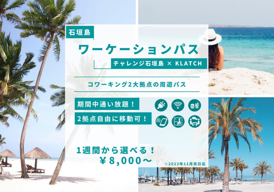 これらを受け、島内コワーキングスペースの二大拠点であるCoworking Space KLATCH Ishigakiとイベント&コワーキングスペース チャレンジ石垣島は、島内に点在する「働く場所」が繋がり面として石垣島がさらに盛り上がるきっかけになればということで、二社共同でのワーケーションパスの販売を決定しました。