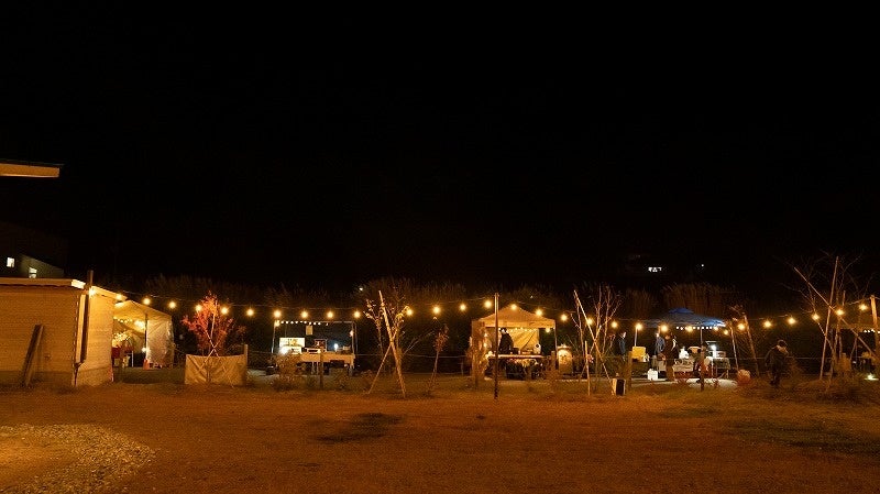 スカイランタン打ち上げの時間まで、ナイトマルシェで地元グルメを食べてゆっくり過ごすのもよし。おしゃれなディナーを作って食べながら賑やかな空間でグランピングを楽しむこともよし。お客さまなりの非日常体験をお楽しみくださいませ。