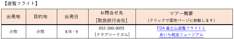 上記は、現在一般販売している旅行ツアーの一部となります。全てのチャーター便・遊覧フライトの運航予定を記載しているものではありませんのでご了承ください。