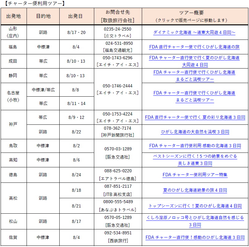 現在募集中の、FDAチャーター便を利用した旅行ツアーのご案内です。