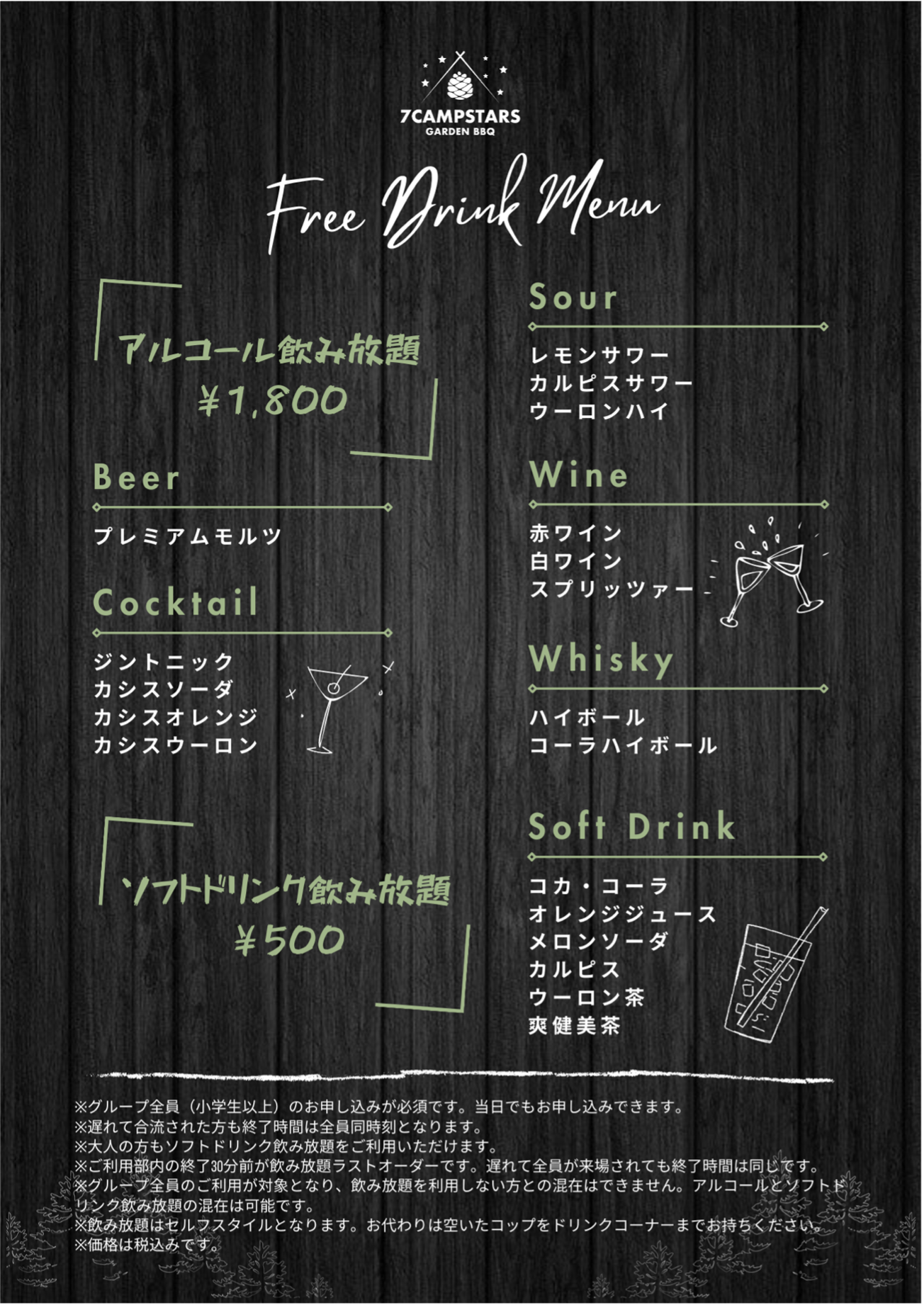 当店では、3つのBBQセットと豊富なドリンクメニューをご準備しております。