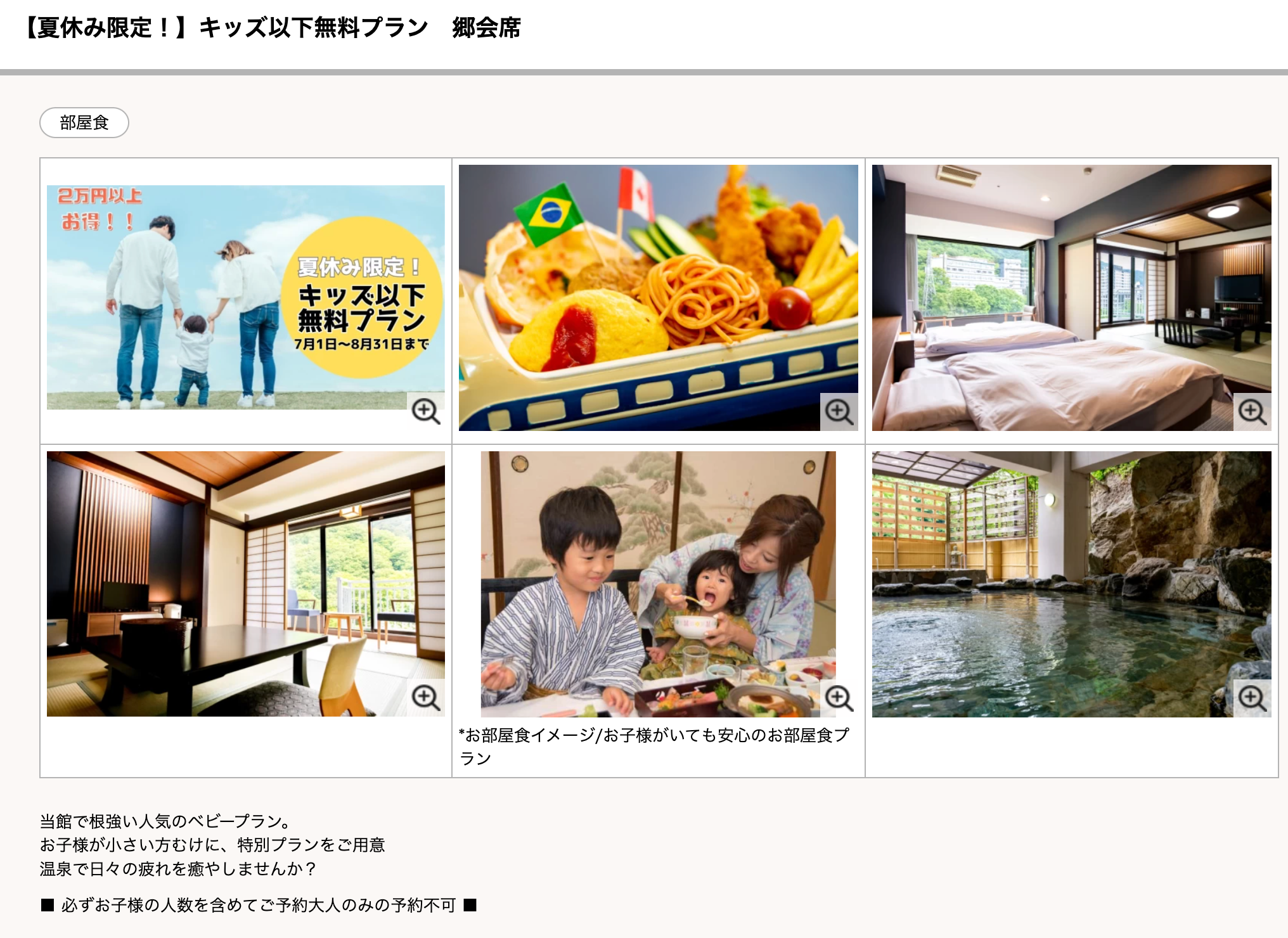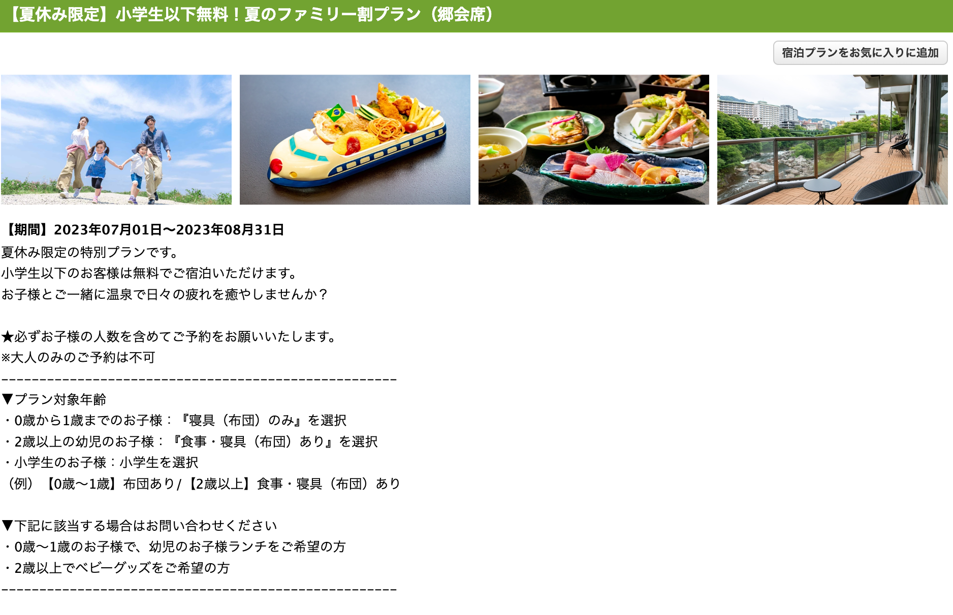 家族旅行応援するため、小学生以下無料のキッズプランを夏休み限定(土曜日を除く)でスタート!