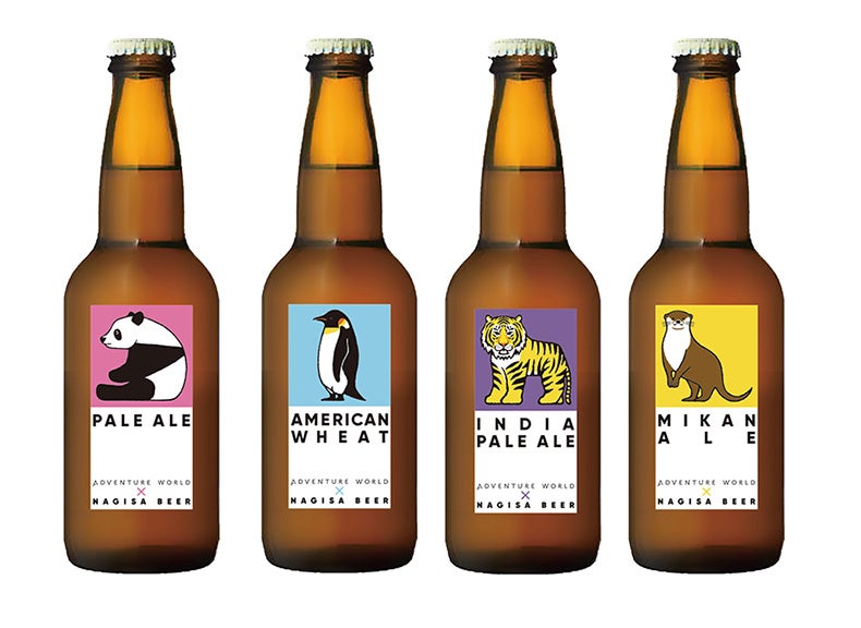 122種のイラストの内4種を使用したアドベンチャーワールドオリジナルラベルのナギサビールを販売します。