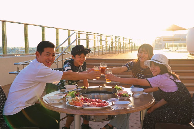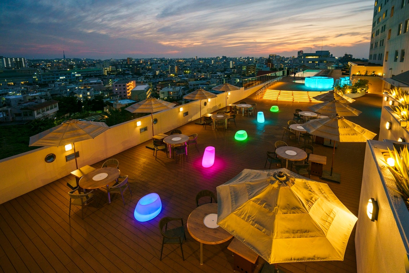 那覇の街を一望するインフィニティプールに隣接する開放的なBBQテラスのは4月~11月の期間限定の施設。お一人様5,000円(大人/平日)90分食べ放題で、お肉や海鮮、野菜などの他、沖縄そばの麺を使った焼きそば、ランチブッフェで好評のホテル特製カレーもお好きなだけお召し上がりいただけます(ソフトドリンク数種含む)。アルコールも各種ご取り揃え、人気の「オリオンビール」を含むアルコールフリードリンクプランもご用意しております。BBQテラスは宿泊者以外のご利用も可能。