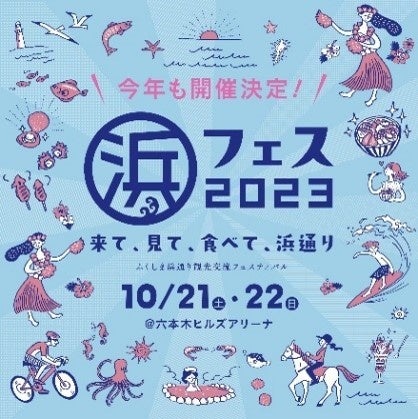 「これまでの復興支援に対する感謝と復興の姿を感じてほしい」という思いから、昨年初開催したふくしま観光交流フェスティバル、通称「浜フェス」が、今年も2023年10月21日(土)~10月22日(日)の2日間、六本木ヒルズアリーナにて実施いたします。