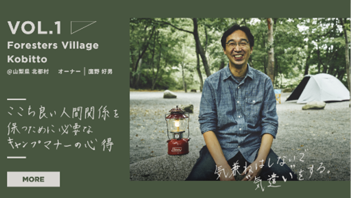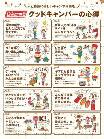 「人と自然に優しいキャンプ体験を。」をコンセプトにグッドキャンパーになるための心得を10箇条にまとめて発信しています。