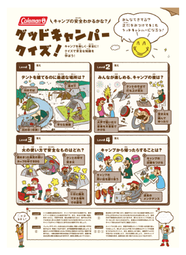 本キャンペーンは、キャンプ場でのチェックイン時にキャンパーに配布される10個のミッション(クエスト)とクイズからなります。キャンパーはキャンプ中にこれらのミッションやクイズに挑戦することで、ゲーム感覚で楽しくキャンプマナーや安全を学ぶことができます。ミッションはキャンパーがキャンプ場内で実践できる様々な課題や活動(ごみの分別や火の取り扱いなど)を含んでいます。キャンパーがすべてのミッションやクイズを達成すると、景品が進呈されます。
