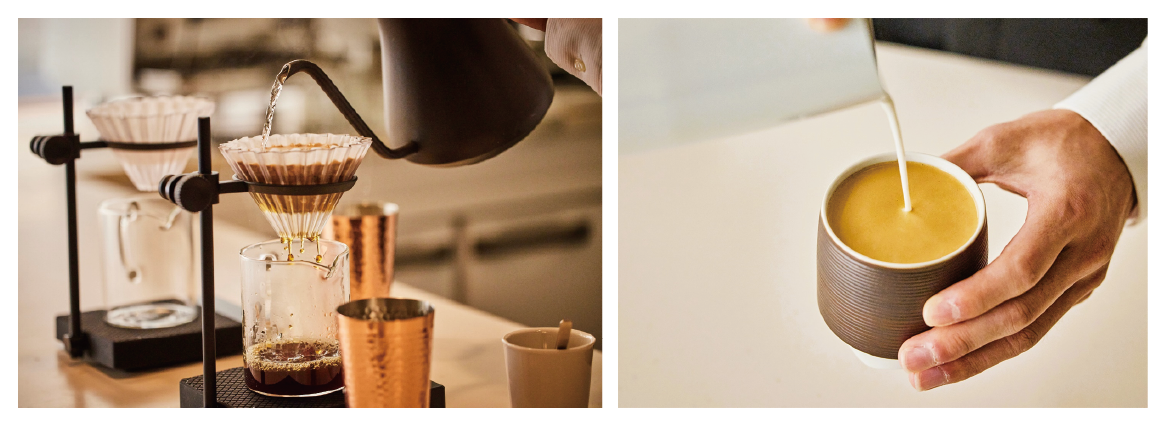 (スペシャルティコーヒー ハンドドリップ ICE/HOT、カフェラテ ICE/HOT、りんごジュース)