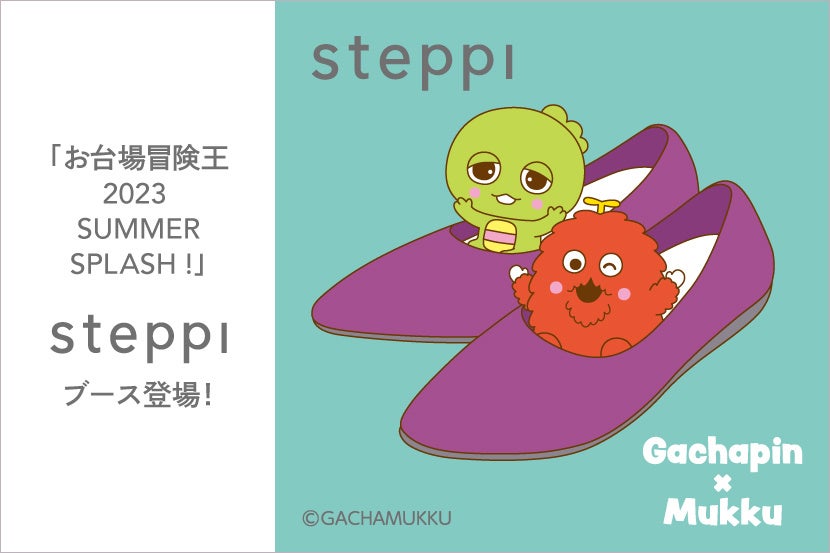 本イベントでは、飲食や水遊び、ワークショップなどが楽しめる「ガチャピン・ムックパーク」内の特設ブースにて、実際に『steppi』の履き心地を体験できるほか、シューズのプレゼント企画も実施します。