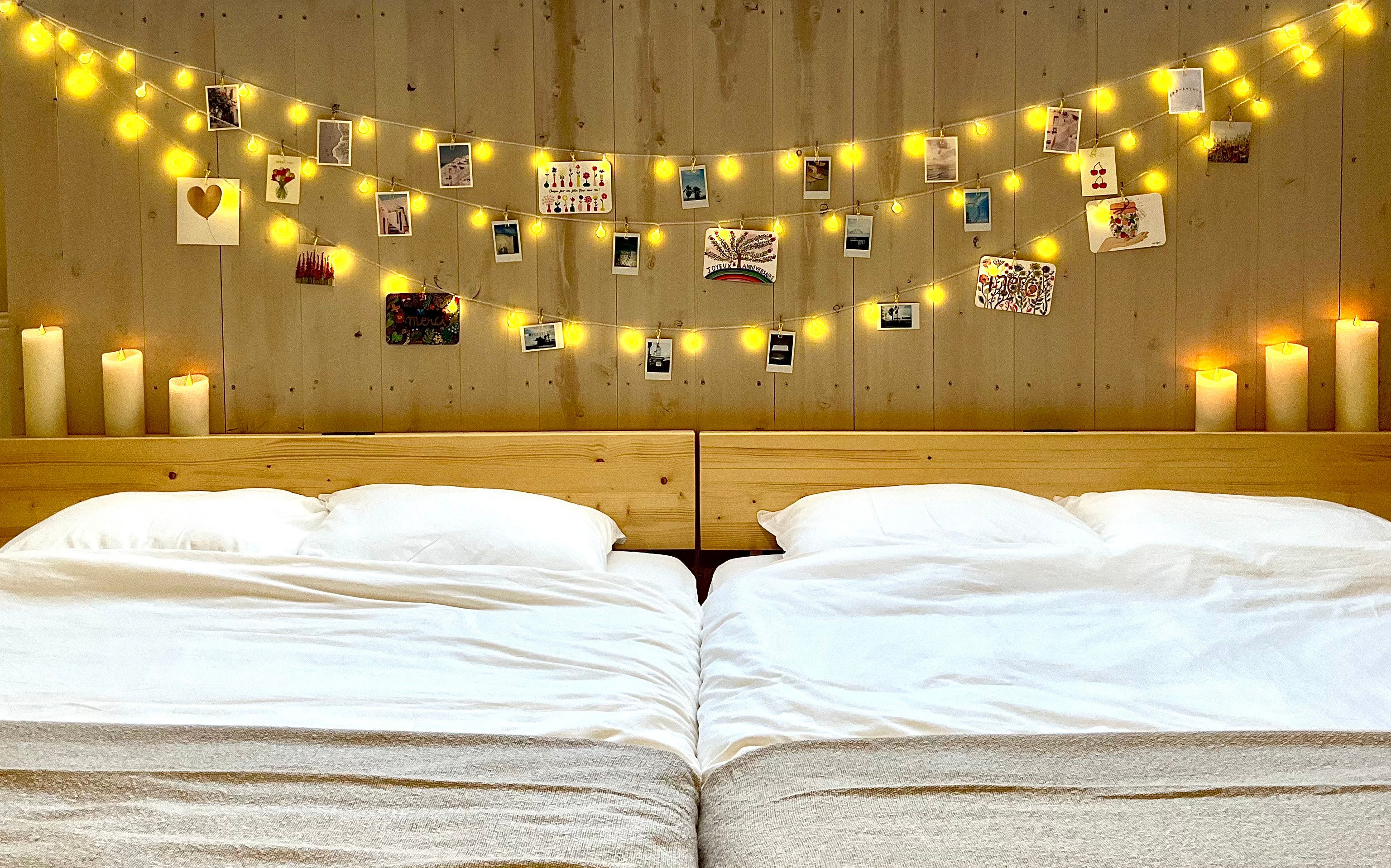 …ベッドボードにはチェキを飾れる、キャンドルライトが幻想的な“映えスポット”をご用意