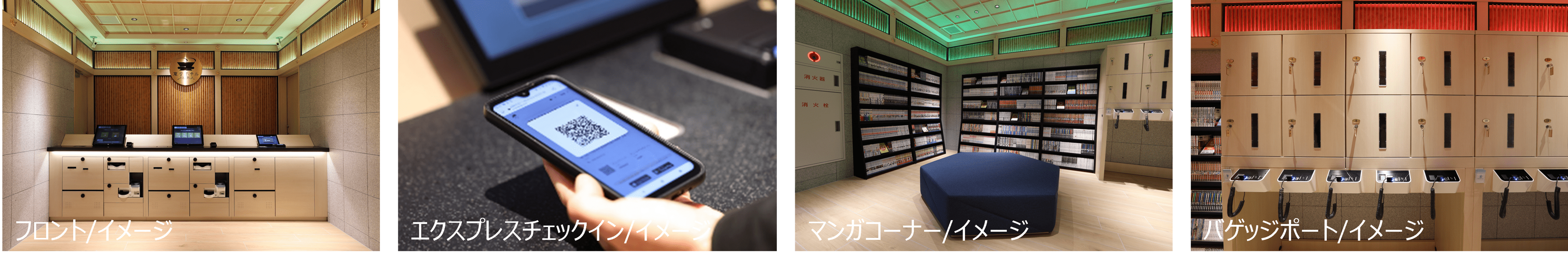 最短10秒でチェックインが完了する「エクスプレスチェックイン」を導入しております。全客室に、衣類のしわやにおい・ウイルスを除去できるクリーニングマシン「LGスタイラー」を設置し、客室の水には世界中のアスリートから支持をうけるファイテン社のプレミアムな水「ファイテンウォーター」を採用いたしました。ロビーには無料でご利用いただける約1,800冊のマンガコーナーや、スタッフを介することなくお客様のご都合にあわせて無料でお荷物を預けていただけるバゲッジポートを設置しております。