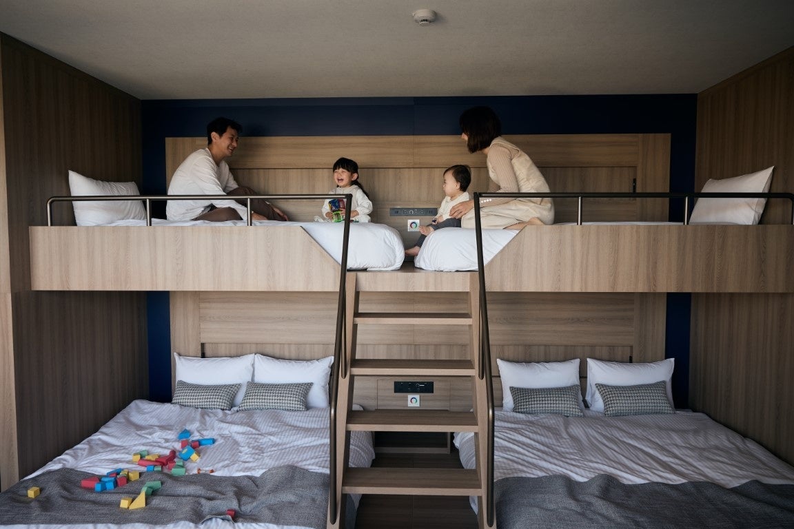 当ホテルは最大6名で宿泊できる広々とした客室が特徴的で、ホテルならではの快適さに加え、靴を脱いで客室にお上がりいただくスタイルのためご自宅で過ごすような安心感を兼ね備えております。