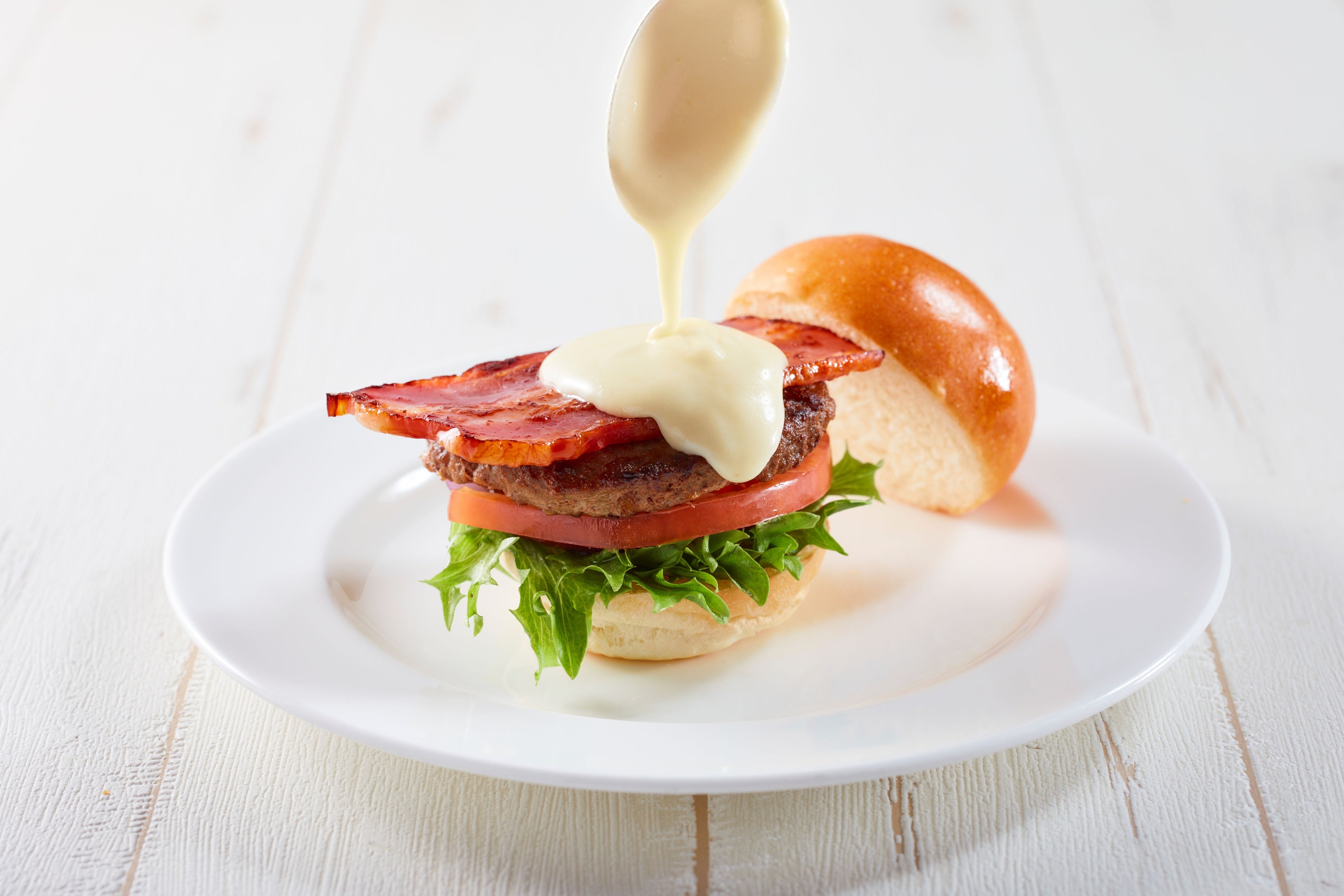 ハンバーガーやコーンポレンタ、カレーやオムライスにかけてお楽しみいただける濃厚なチーズソースが登場。お好みのアレンジでお召し上がりください。