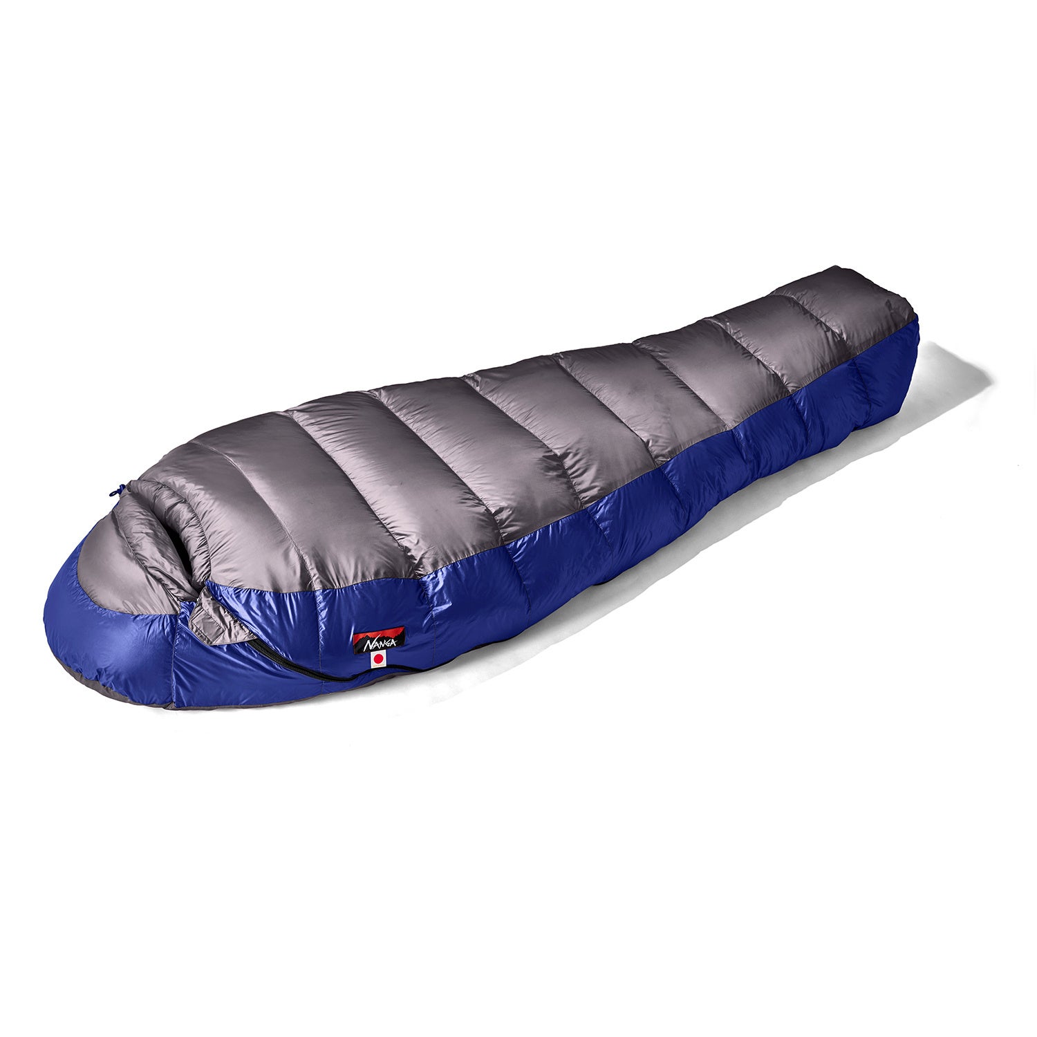 NANGA が独自に開発した防水透湿素材オーロラライトを採用したスリーピングバッグシリーズ。ボックス キルト構造に加え、ダウン量 600g 以上のモデルには顔まわり、足元にチタンスパッタリング材を採用する ことで輻ふく射しゃによる蓄熱・保温効果を高めるなど、高機能なテクノロジーを体感することができます。