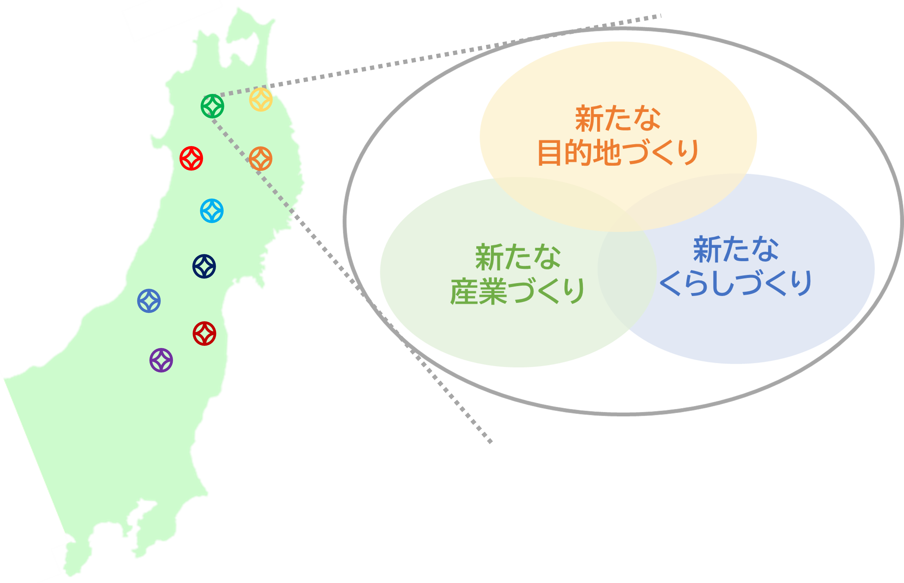 「東北の宝もの」を地域の皆さまとともに探して、それを磨き、つくりあげ、多くのお客さまに知ってもらい、来てもらい、そして東北を好きになってもらう。「ああ、来てよかった」。そんな東北の宝ものが日本の宝ものになるための取り組みを推進します。