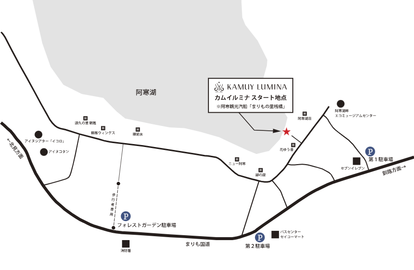 入場口:阿寒観光汽船「まりもの里桟橋」前
