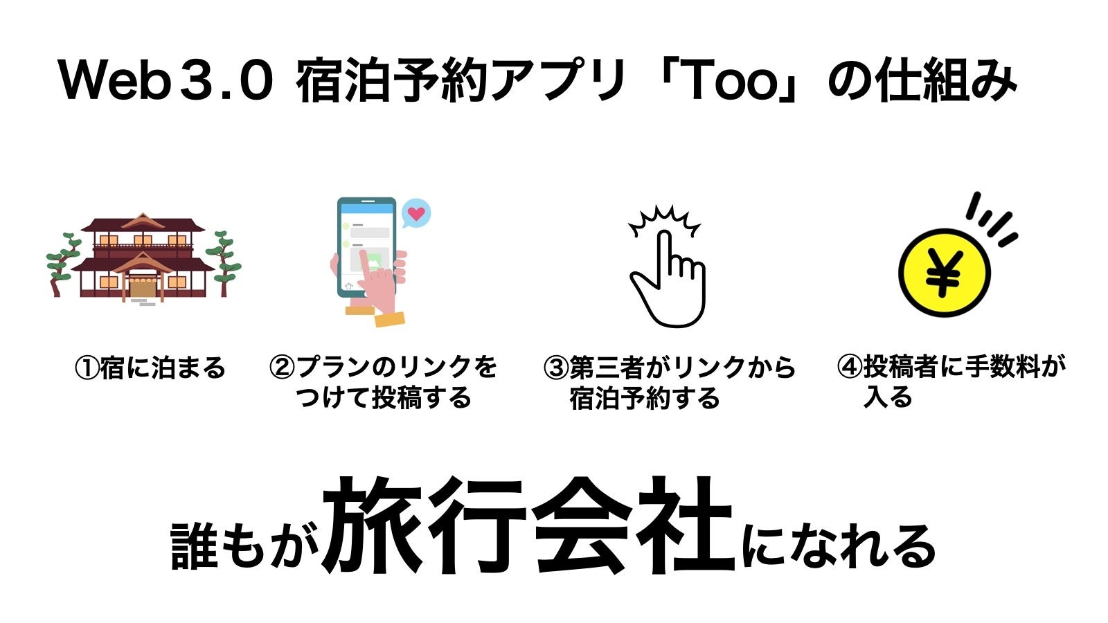 「Too」は個人が宿泊送客で手数料を得られる宿泊予約アプリ。