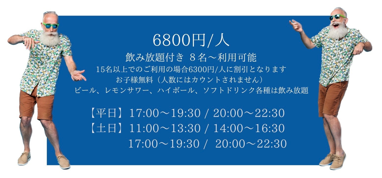 15名以上でのご利用の場合6,300円/人(税込)に割引となります