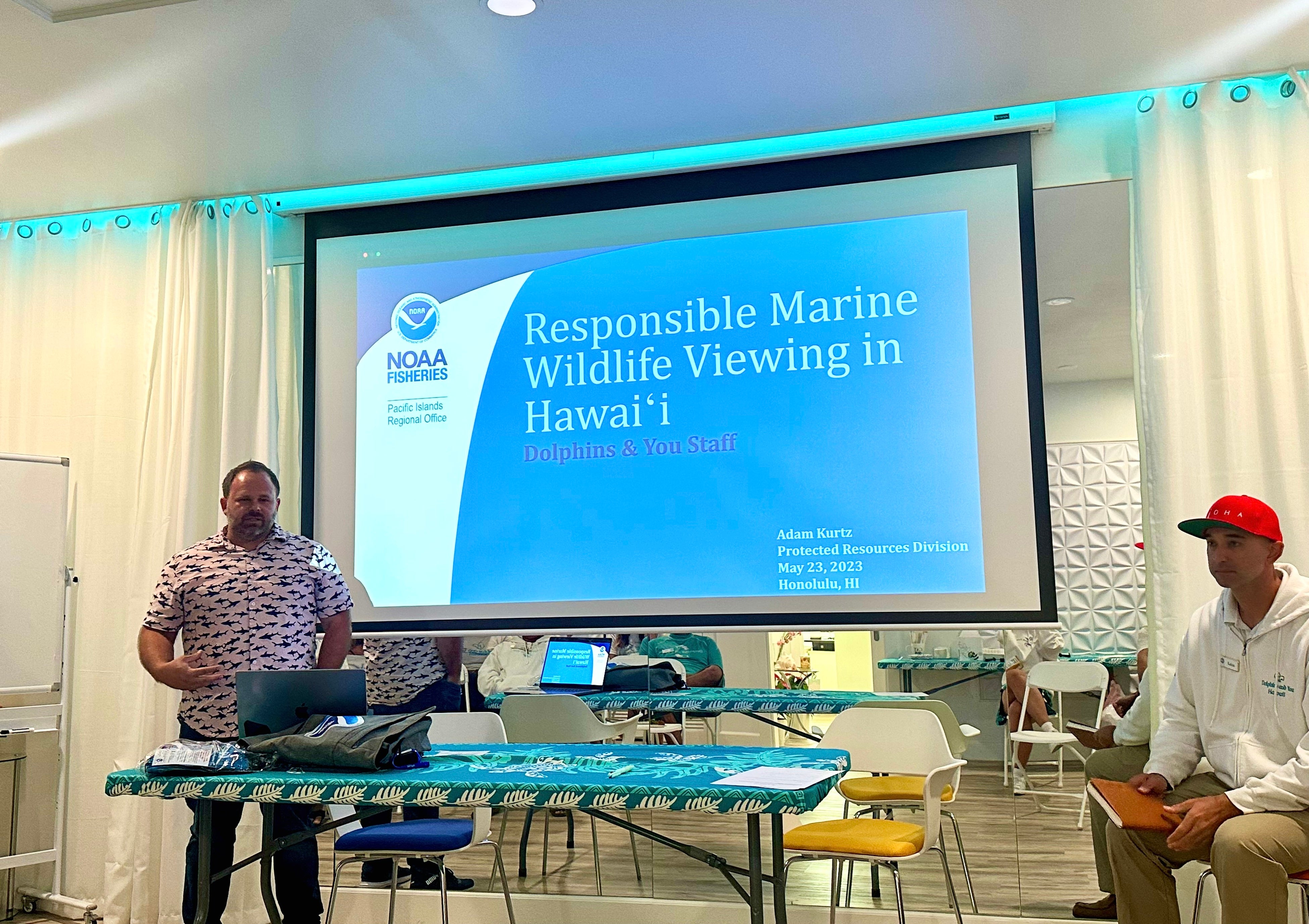 アンドユークリエーションズは、「サスティナブル・ツアー・オぺレーター」持続可能なツーリズム認証プラグラム参加し、さまざまな角度からビジネスを見直しました。また、常に最新の情報を取得し、スタッフの成長と持続可能性の実践と取り組みへ認識を高めるための持続的なトレーニングなどを行っています。最近では、アメリカの自然保護団体NOAAと海洋生物についてのボートクルー達のトレーニングを実施しました。
