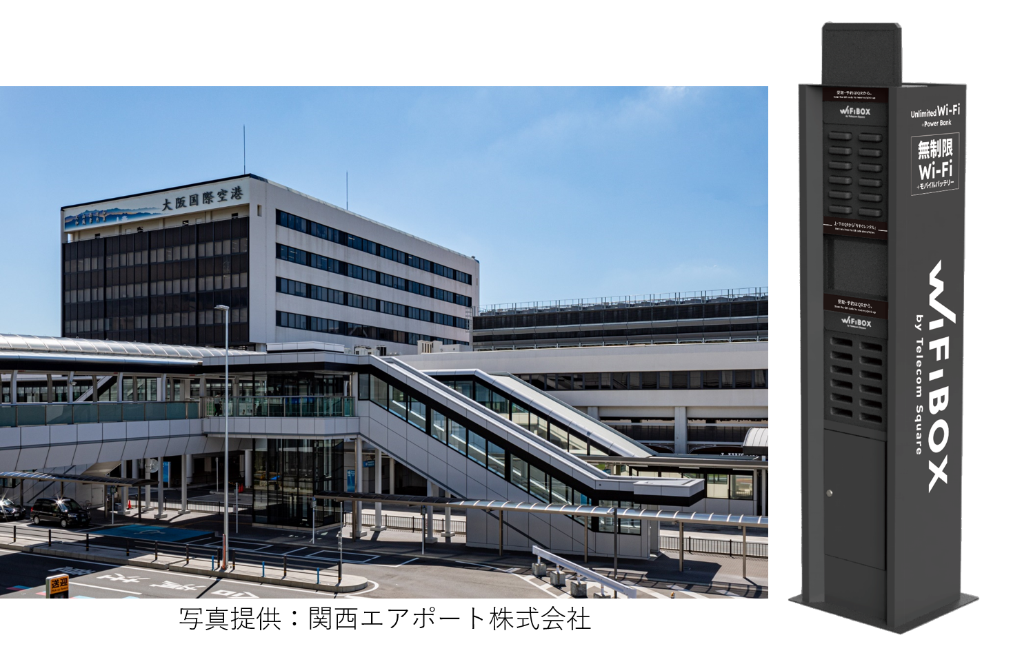 関西国際空港では2022年4月1日のWiFiBOXリリース時より多くの方にご利用をいただいておりますが、大阪国際(伊丹)空港への設置により、関西エリアからの海外旅行者の方々のニーズを大きくカバーすることが可能となります。また、出発は大阪国際(伊丹)、帰国は関西国際空港といった行き帰りでご利用空港が異なるケースにも対応できるようになることや、国内におけるビジネス、観光、ギガ不足などの利用ニーズにより多く応えることを目的に今回設置することとなりました。