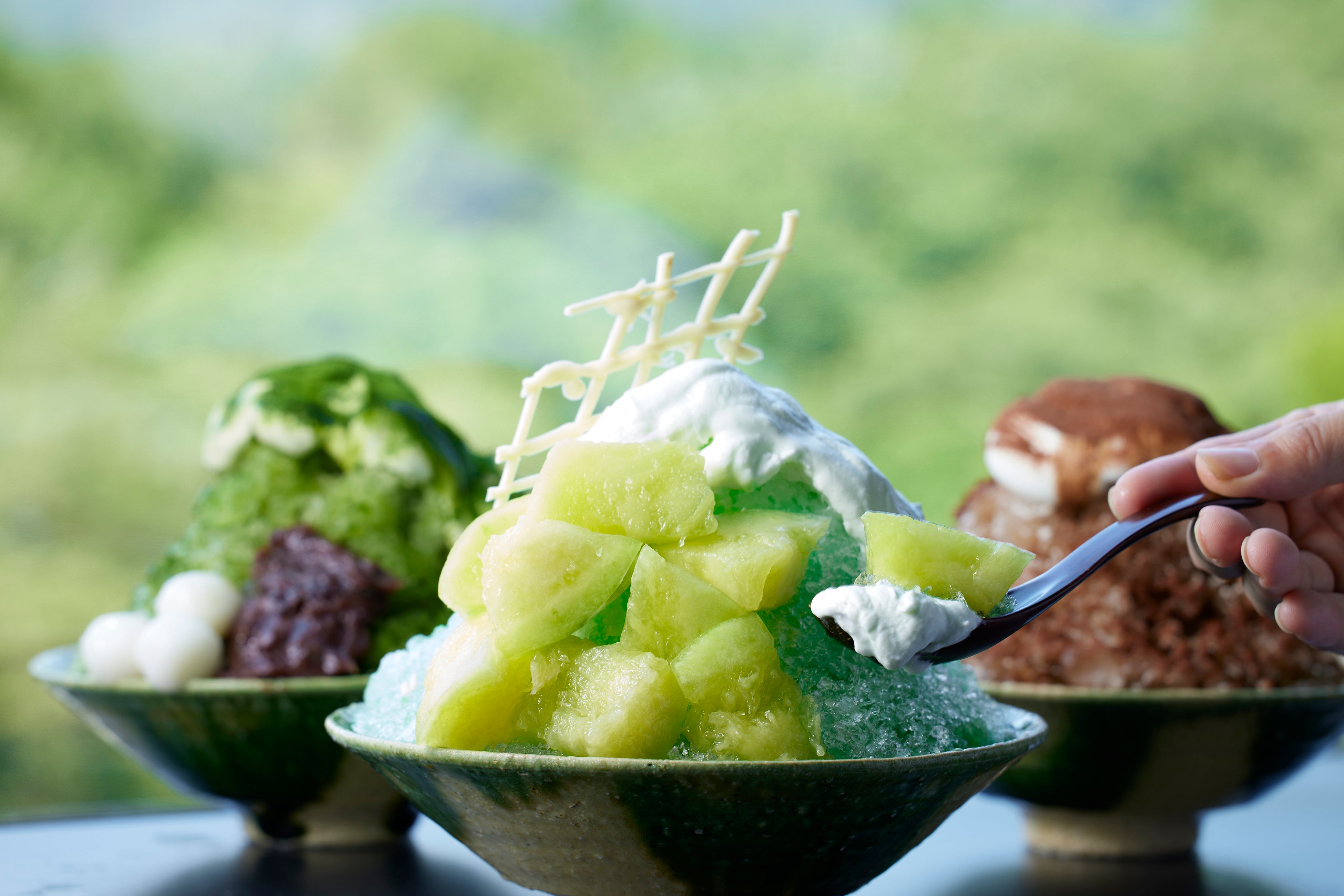 富士山の雄大な姿を望むロビーラウンジ「TROFEOラウンジ」では、暑い夏にぴったりのかき氷3種類をご提供いたします。一本のメロンの木から一個しか収穫できない静岡県産クラウンメロンが主役の「メロンメロンメロン」は、その高貴な香りと熟した甘み、とろけるような食感が特徴です。自家製メロンシロップにココナッツクリームが合わさり、上品な味を演出します。また、富士山の夏の凛々しい姿をイメージした「“夏富士”抹茶氷」は、静岡の丸七製茶の抹茶を使用したシロップをたっぷりかけ、ふわふわの抹茶練乳クリームをトッピングしてあり、粒あんと白玉も添えてお召し上がりいただけます。そして、ホテル開業以来人気メニューとして定着したティラミスをかき氷にした「TROFEO特製ティラミス氷」は、エスプレッソソースにマスカルポーネクリームをたっぷりとのせた大人の味わいに仕上げられています。夏の暑さを癒し、甘くて爽やかな味わいを堪能するために、ぜひTROFEOラウンジで涼みにお越しください。