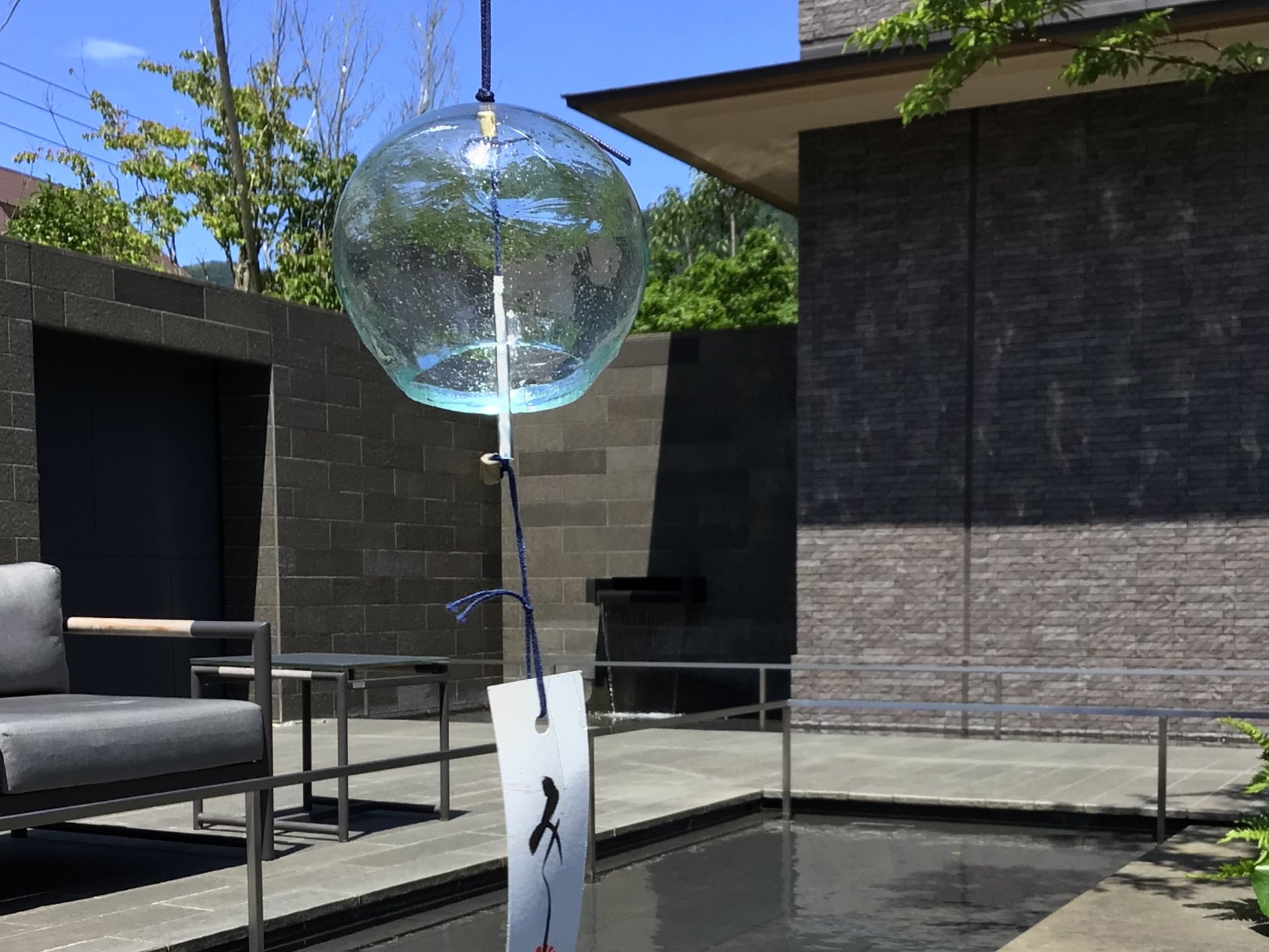 箱根・強羅 佳ら久では、これまでも奥深い箱根の魅力を感じる取り組みや情報発信をしてまいりました。このたび、「佳ら久」のシグネチャーテラスである「水のテラス」を活用し、地元の小田原や三島で親しまれている夏の風物詩「風鈴」を展示したギャラリーを開催いたします。水盤の中にある、四方を水に囲まれたベンチは記念撮影のスポットとしてもお楽みいただけ、夏の暑さが和らぐような空間となっております。夕暮れ時には、水鏡に映る宿の情景を愉しんだり、光の演出によって幻想的に変化するテラスでどこか懐かしさを感じながら散策することもおすすめです。