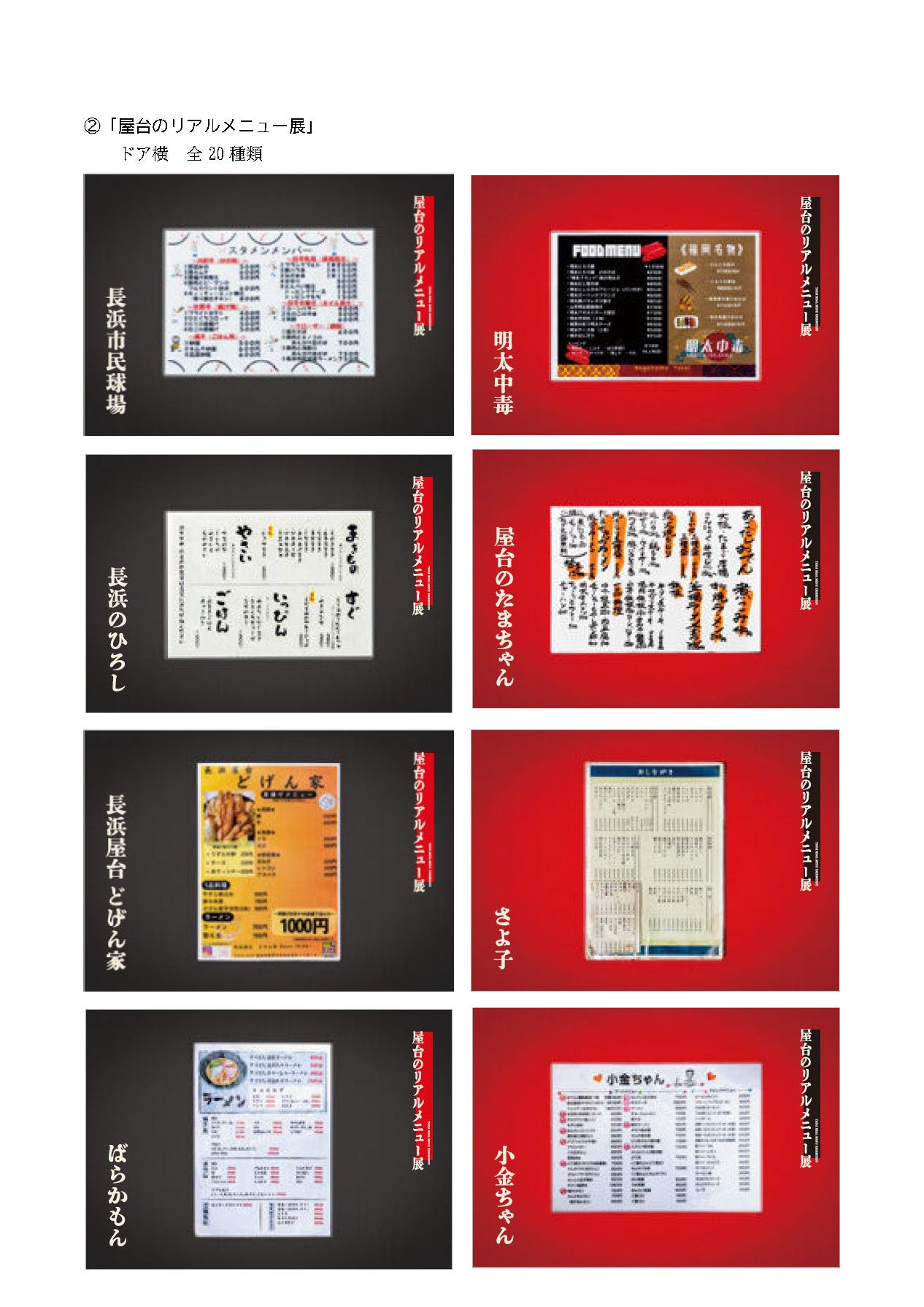 ②実際に屋台に置いているメニュー表を使った「屋台のリアルメニュー展」(ドア横)