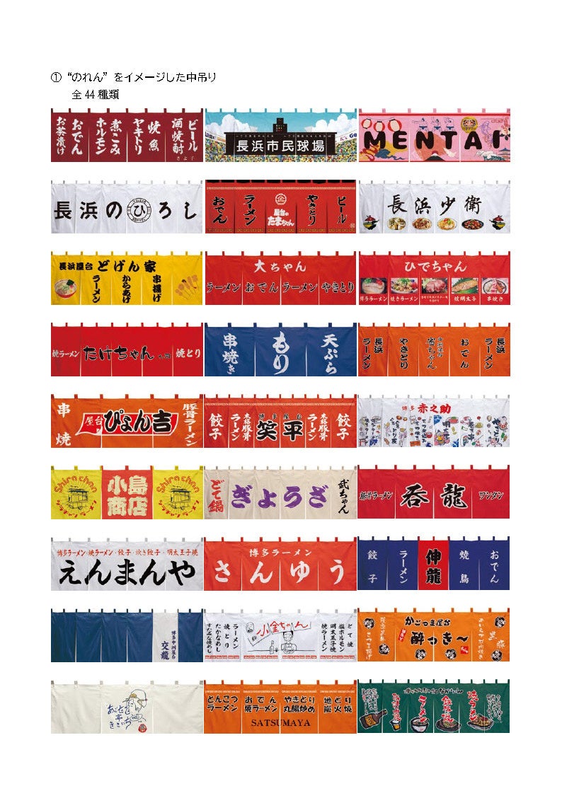 ①屋台の“のれん”をイメージした中吊り