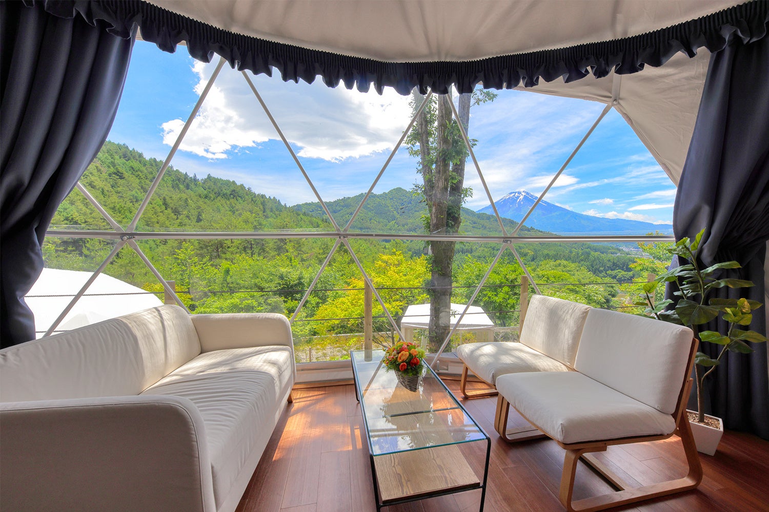この日本屈指とも言える最高のロケーションに14棟のドームテントを配置。