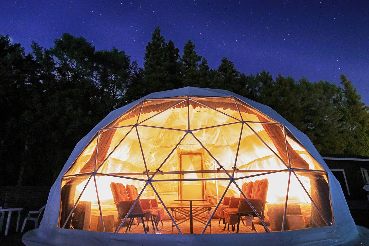 二重構造の冷暖房完備と優れた居住性を有するドームテントにご滞在頂く宿泊体験、