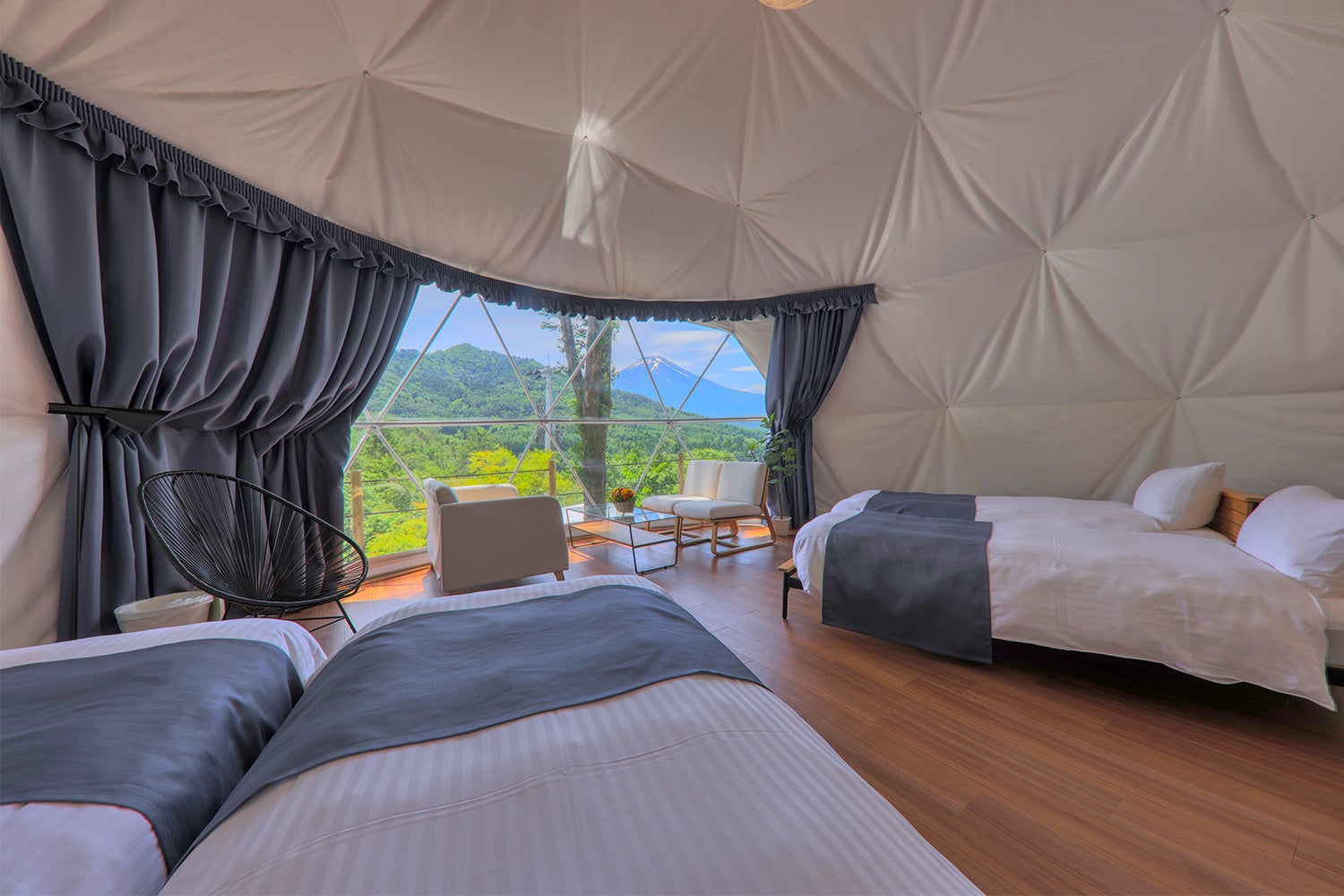 「杓子山ゲートウェイキャンプ」は、山梨県富士吉田市で2019年初夏にオープンしたグランピング施設です。