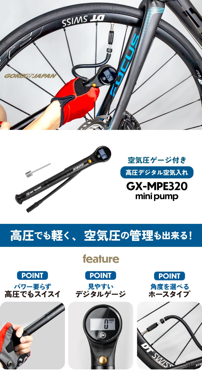 自転車パーツブランド「GORIX」の新商品の「携帯ポンプ(GX-MPE320) 」は