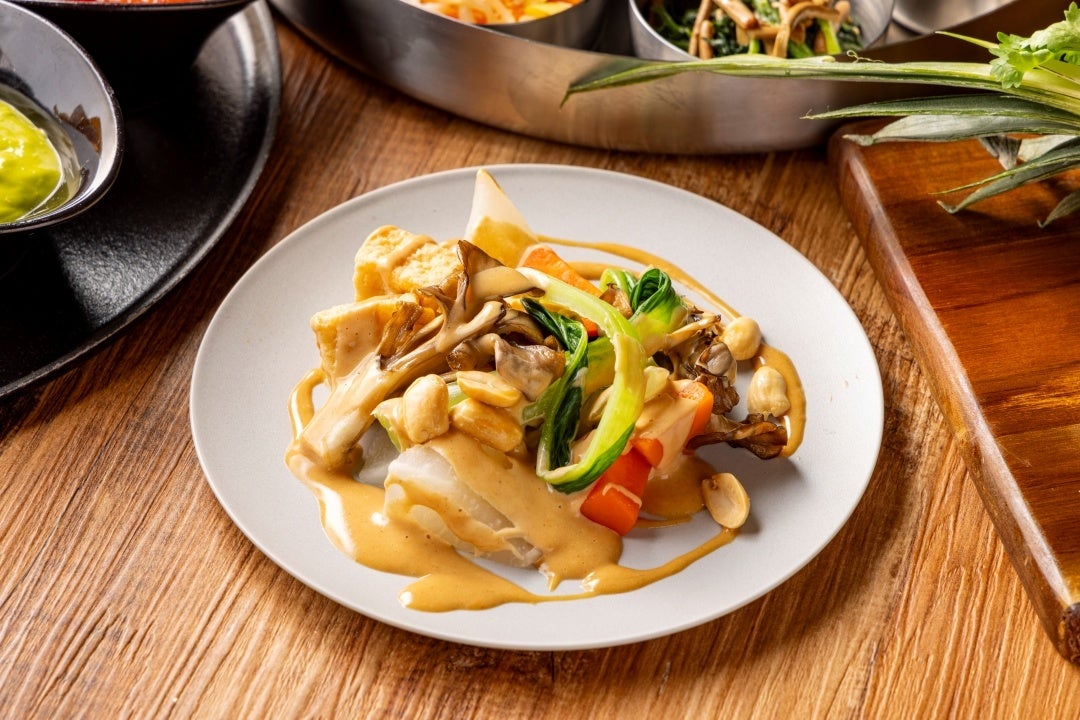 インドネシアの国民食ガドガドは、「ごちゃ混ぜ」という意味。ピーナッツやライムジュース、ニンニクなどを合わせたピーナッツソースと蒸しあげた秋野菜を「ごちゃ混ぜ」にしたヘルシーな一品。