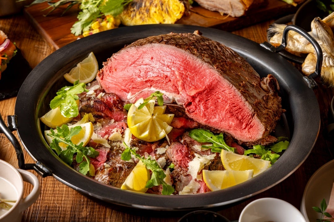 「ビーフタリアータ」は、スギモトが自信をもってセレクトした国産牛の肉を贅沢に使用し、シンプルな下ごしらえのみでじっくりと焼き上げるため、肉自体の旨みを存分にご堪能いただけます。さっぱりとしながらも旨みが強く、もっちりとした肉質が特徴のもち豚の一種「愛知みかわ豚」を使った「フィリピン風ポークバグネット」は、豚バラ肉をやわらかくなるまで茹で、表面はカリカリになるまで揚げ、やさしい酸味のあるタマリンドベースのパイナップルサルサと一緒にお召し上がりいただきます。その他にも、「錦爽どりの香港風チキンマリネ」「ベトナム風フォーボー(牛肉のフォー)ステーション」など、さまざまな味、調理法のお肉料理をご用意。
