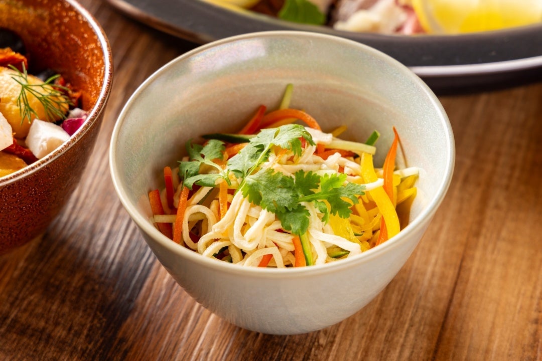 中華料理の前菜で親しまれる干し豆腐を台湾風サラダに仕上げました。塩、醤油、ごま油のみのシンプルでヘルシーな味付け。