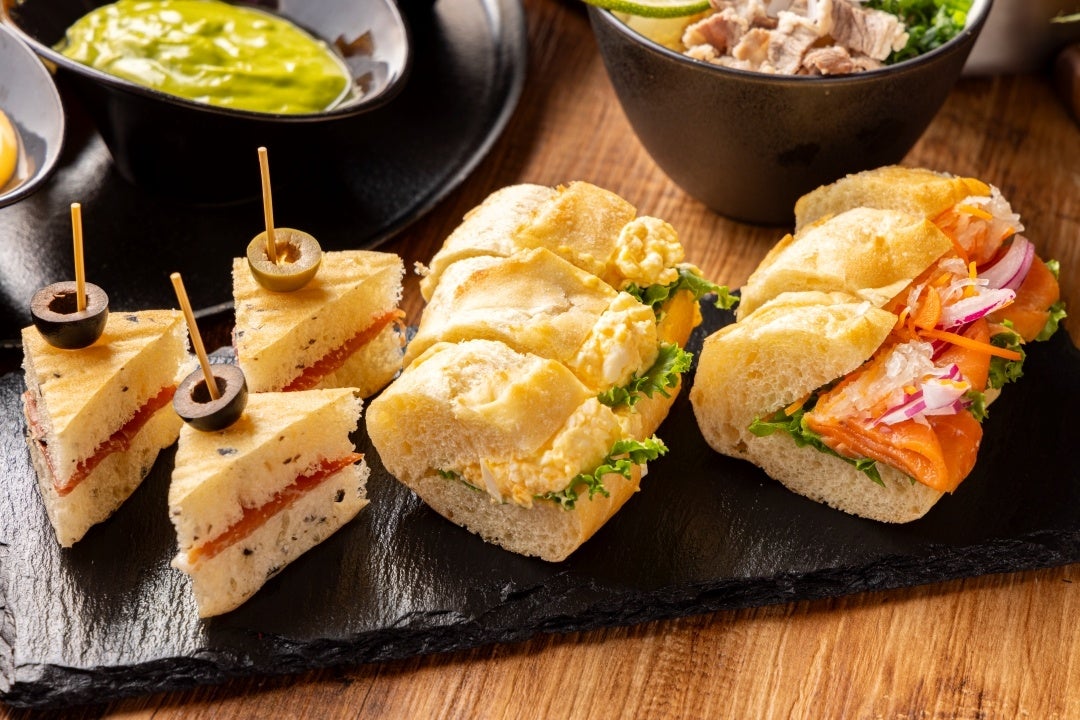 サーモンマリネ、エッグサラダの「バインミー」2種類と、「生ハムオリーブフォカッチャサンド」をご用意。