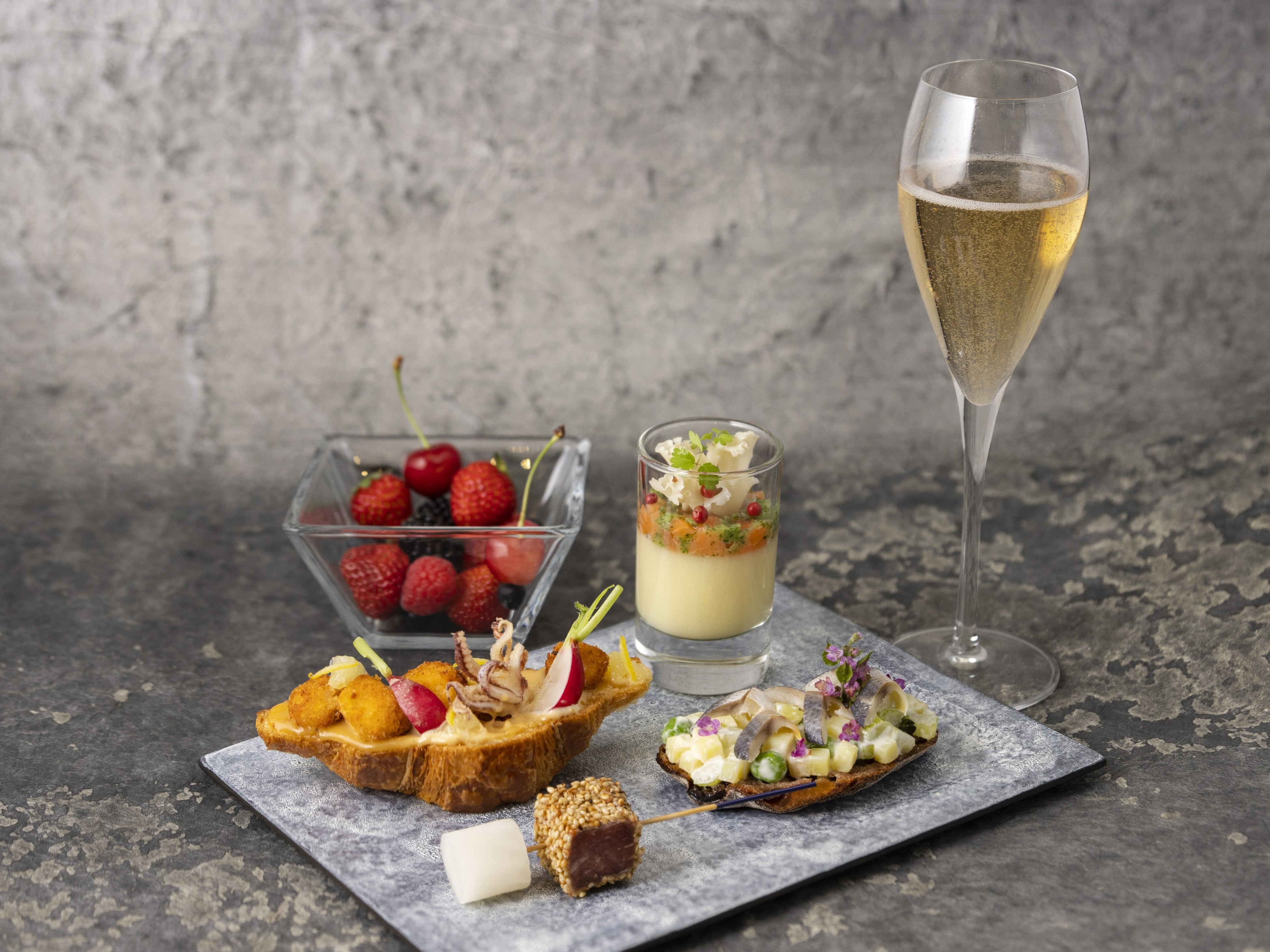 オードブルの時間には、シェフが”その日一番美味しくいただける”食材や味付けにこだわってご用意する、カナッペやピンチョスが登場。日によって味わいや食材が変化するオードブルの品々を、ご夕食前のアペリティフとしてお愉しみください。