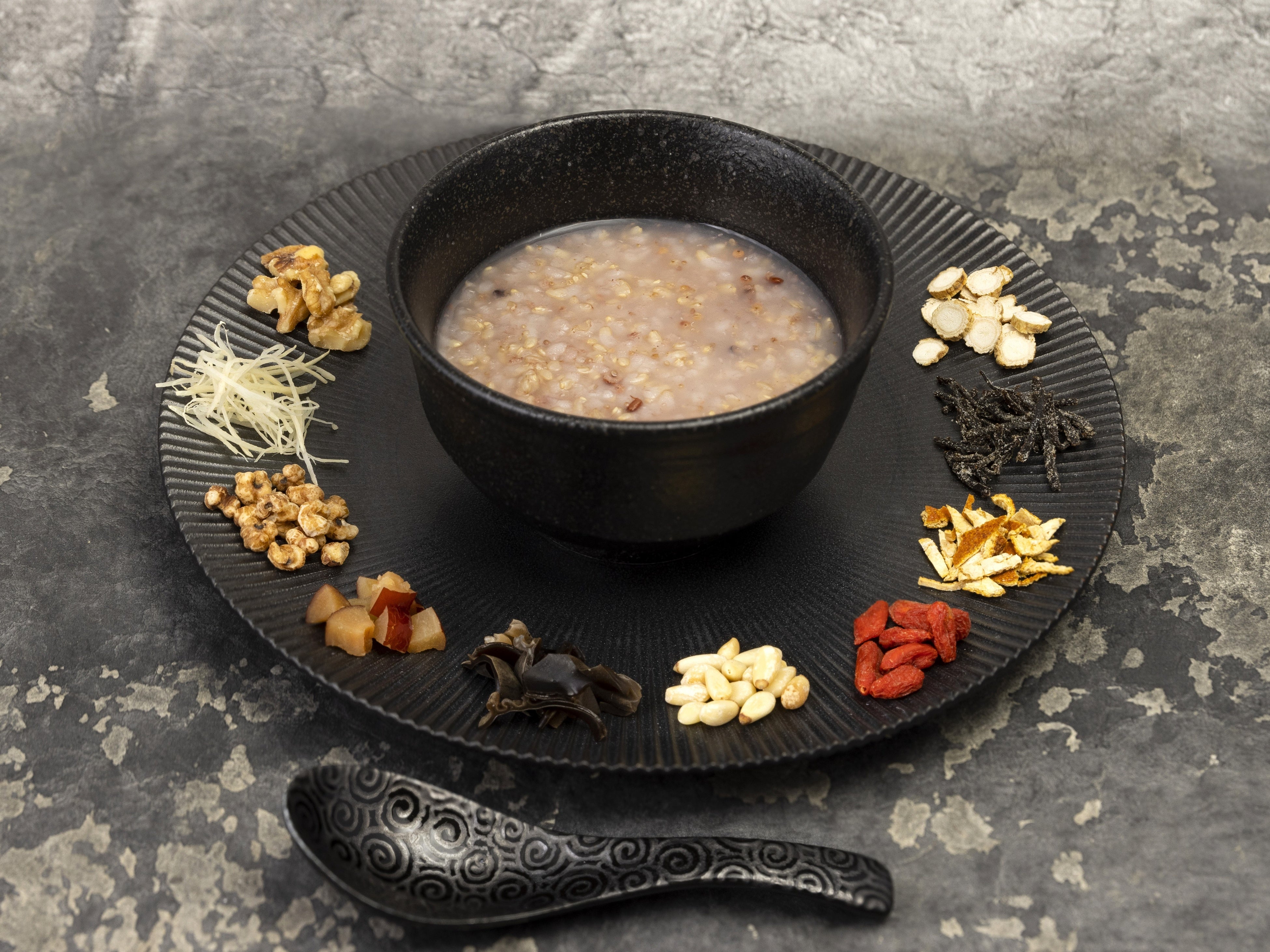 朝のおすすめは、「Jシリアル薬膳粥」。全12種類の薬膳からその日の体調に合わせて自分でカスタマイズし、オリジナルの薬膳粥を愉しむことができます。プールで泳いだ翌朝や夏バテで疲れた朝は、体力回復を期待して、なつめ、鶏肉、高麗人参などを合わせてみてはいかがでしょうか。